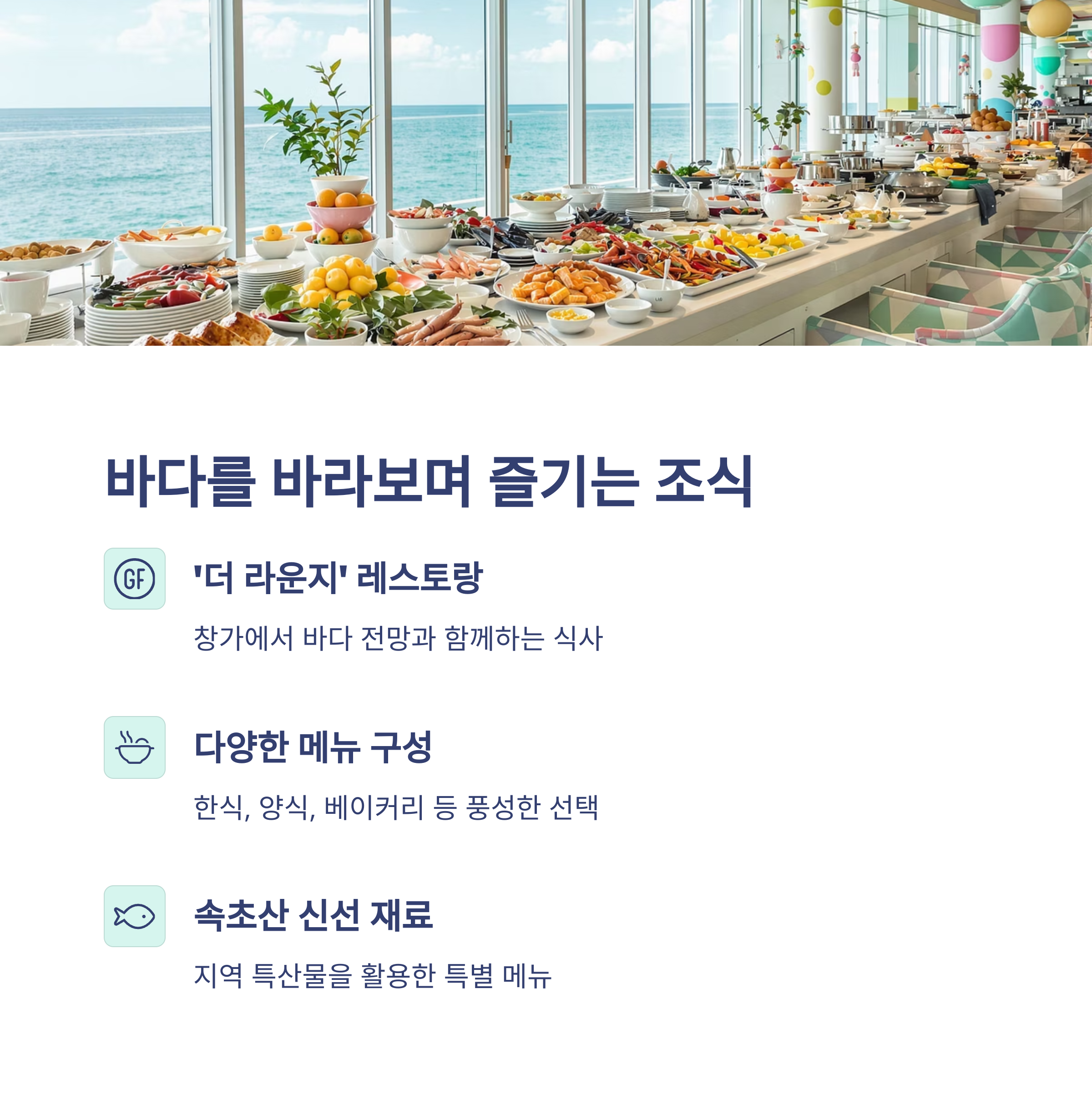 | 조식 포함 옵션 | 추천 | 바다 보며 식사 가능 |
