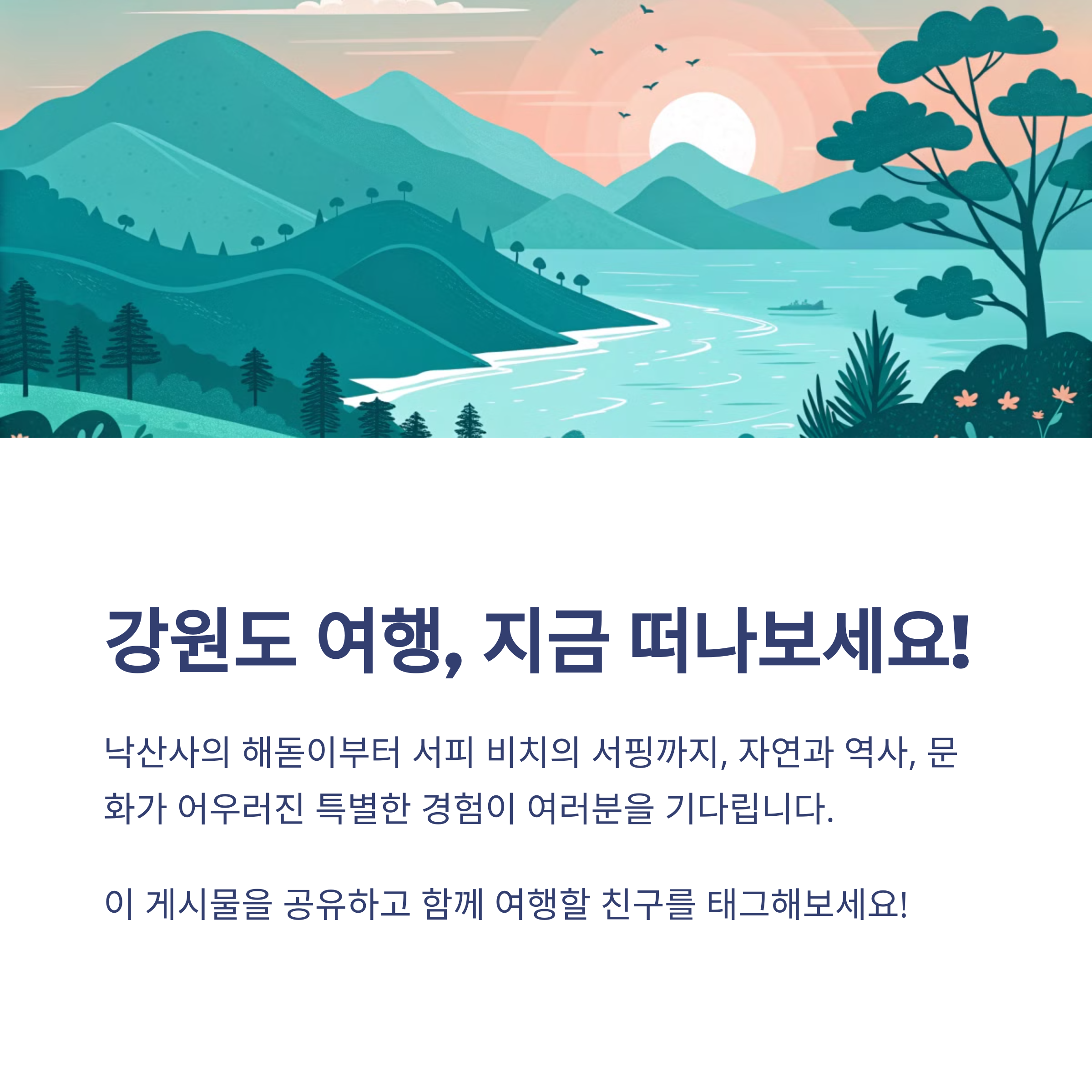 여러분, 강원도 여행을 떠나고 싶은 마음이 생기지 않으신가요? 양양의 낙산사부터 강릉의 오죽헌까지, 강원도의 다양한 매력을 한 번에 경험할 수 있는 멋진 여행 코스를 소개드렸어요.