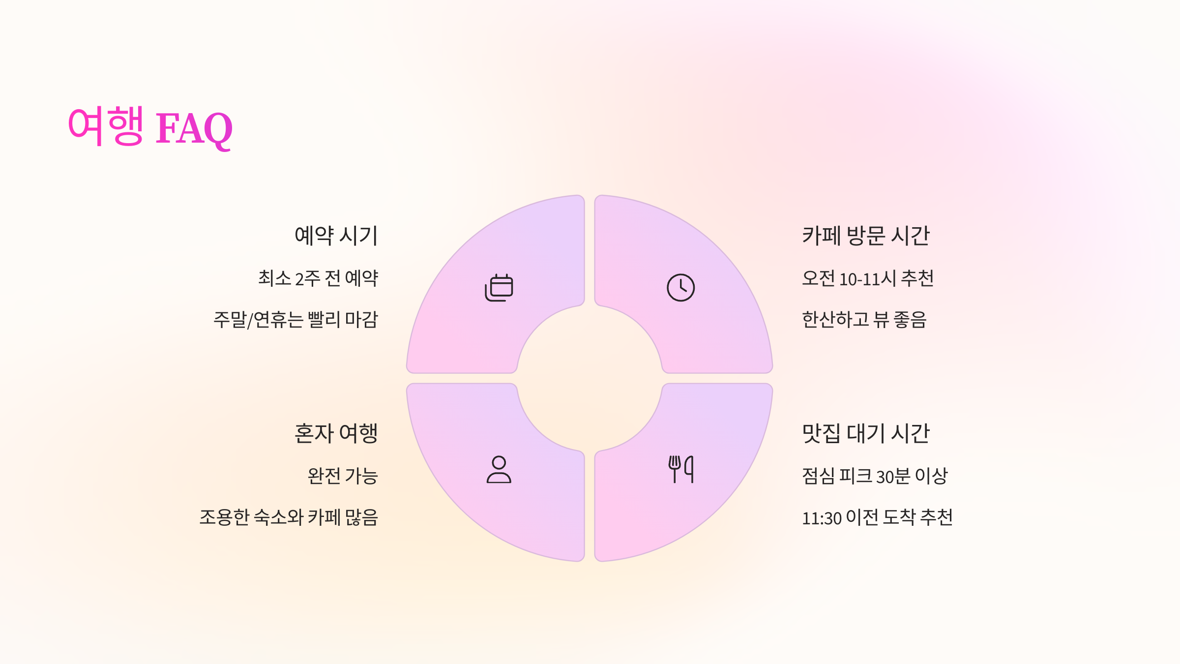 - 평일 여행을 추천 – 주말보다 조용하고 예약도 쉬워요.