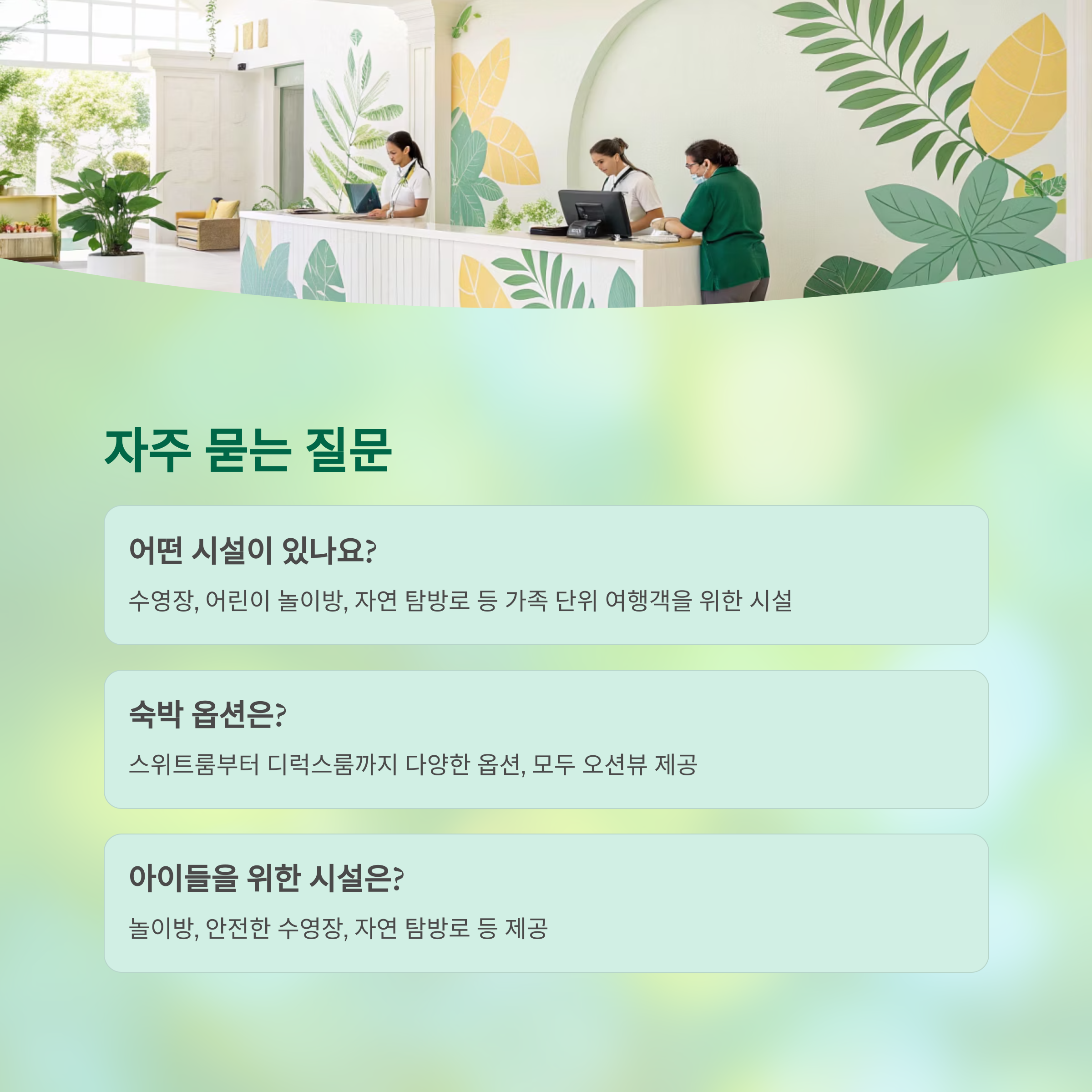 리조트 내 다양한 시설과 활동을 소개하며, 이곳에서의 멋진 시간을 어떻게 보낼 수 있을지 알려드릴게요!