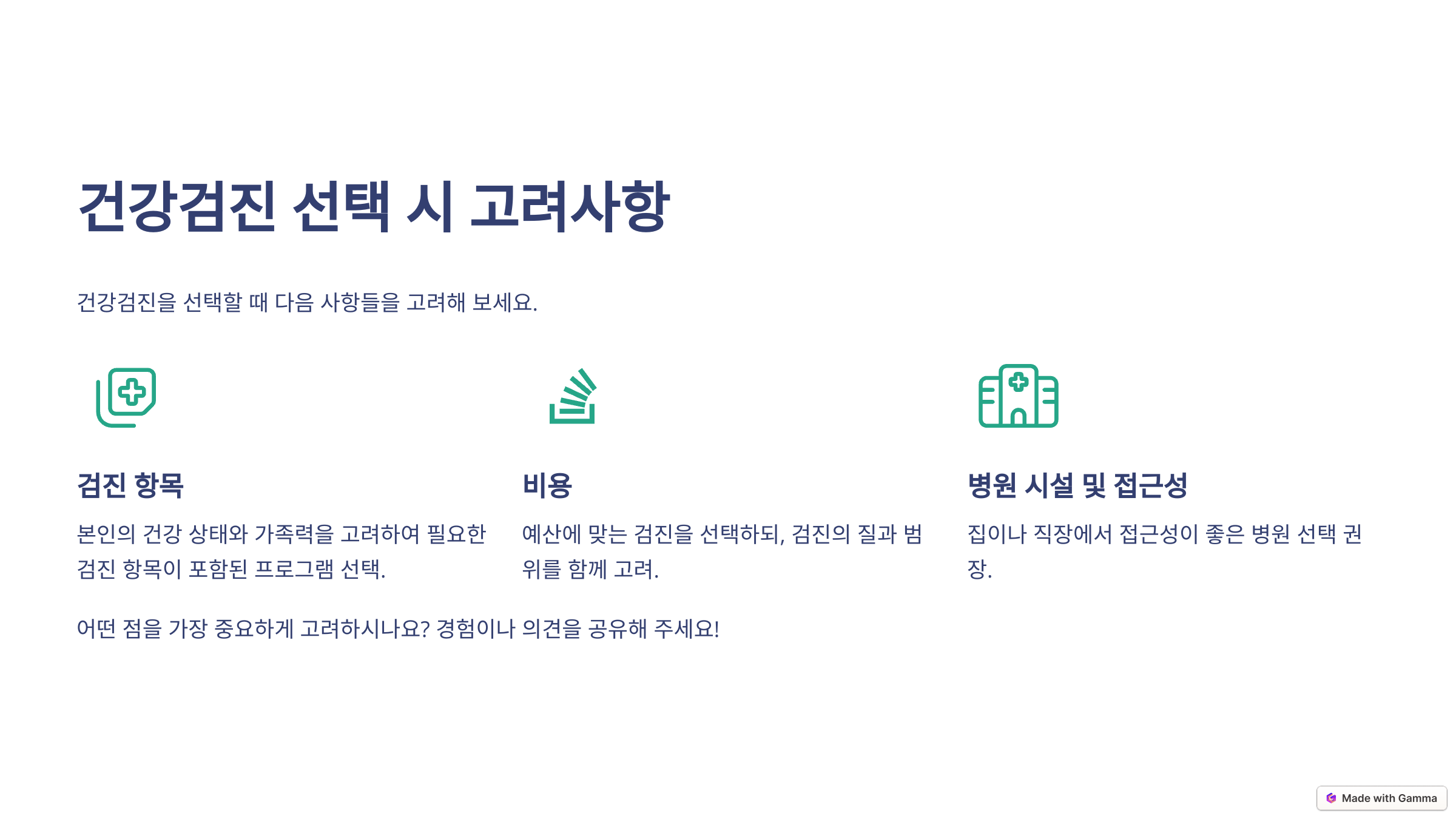 여러분은 건강검진을 받을 때 어떤 점을 가장 중요하게 고려하시나요? 경험이나 의견을 댓글로 공유해 주세요!