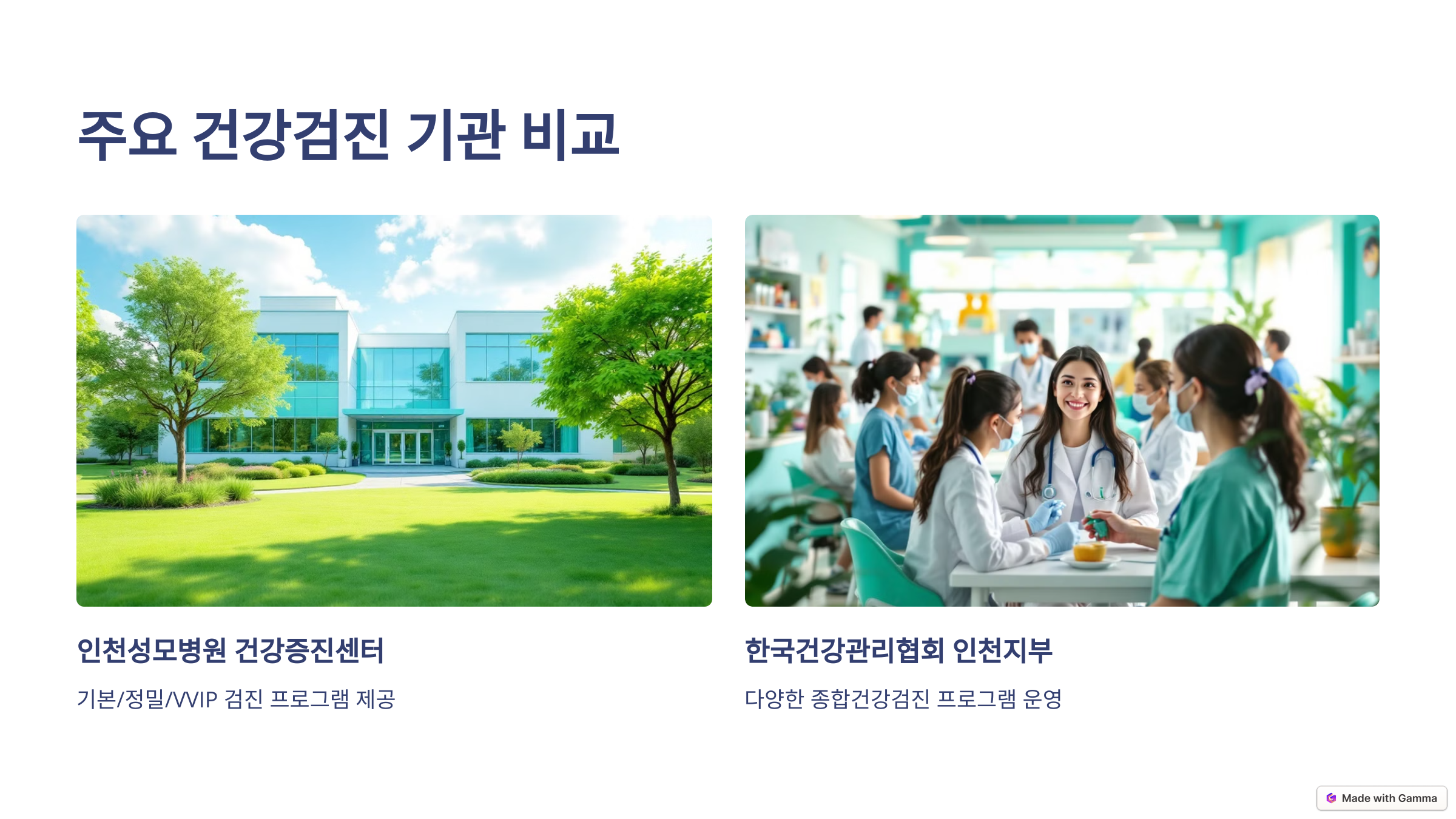 인천 지역 주요 건강검진 기관 및 비용 비교