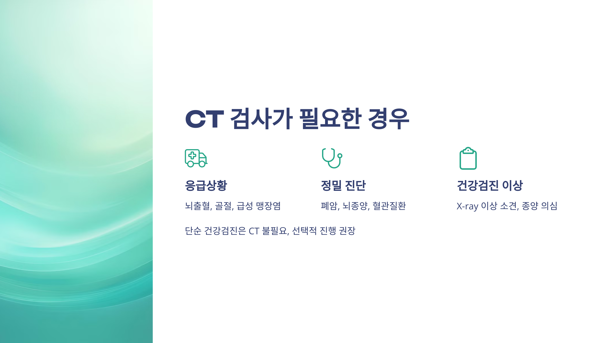 ✅ 건강검진에서 CT 촬영이 꼭 필요한 경우에만 선택적으로 진행하세요.