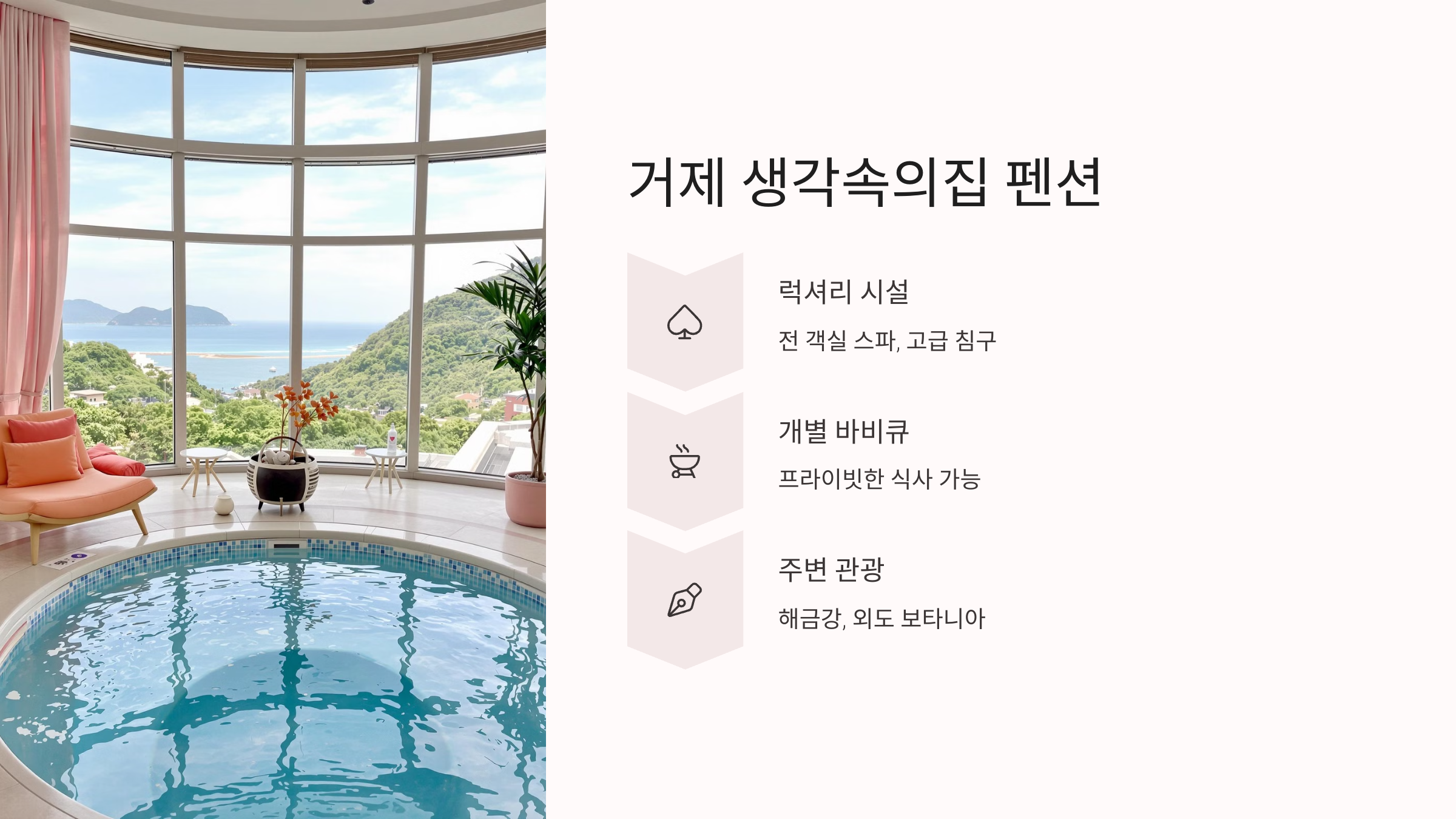 | 거제 감성 숙소 추천: 조용한 바닷가에서 하루 쉬어가기 (1) | 2025.03.30 |