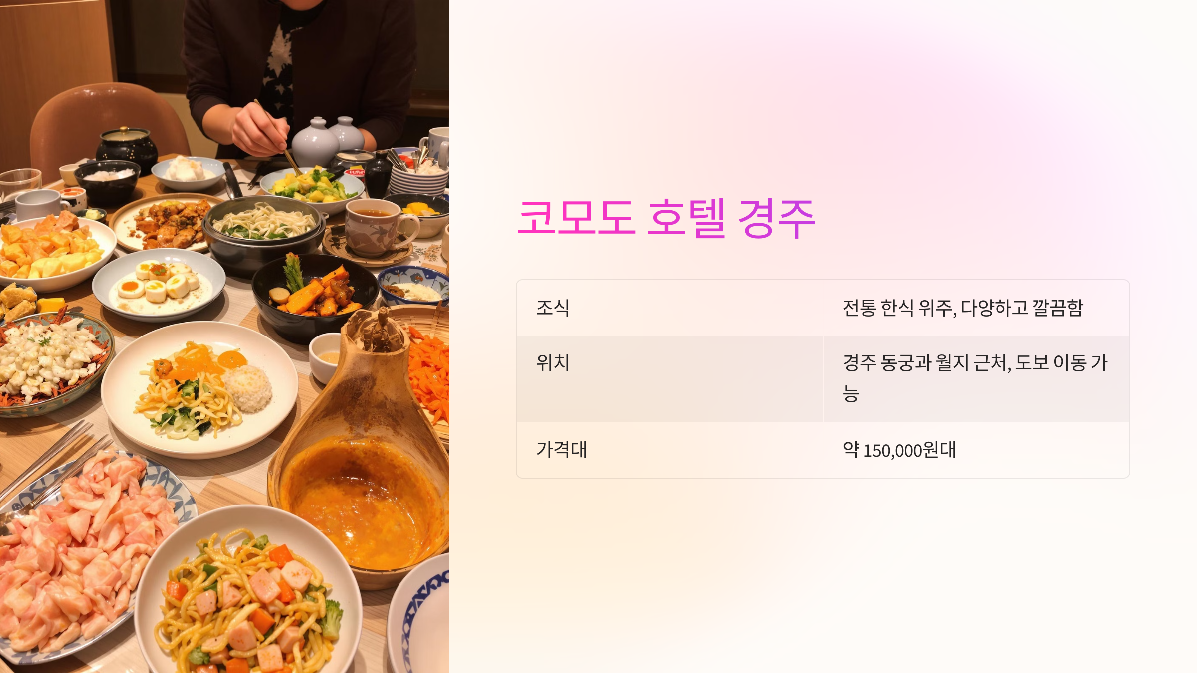 2. 코모도 호텔 경주 – 전통 한식 조식으로 시작하는 하루
