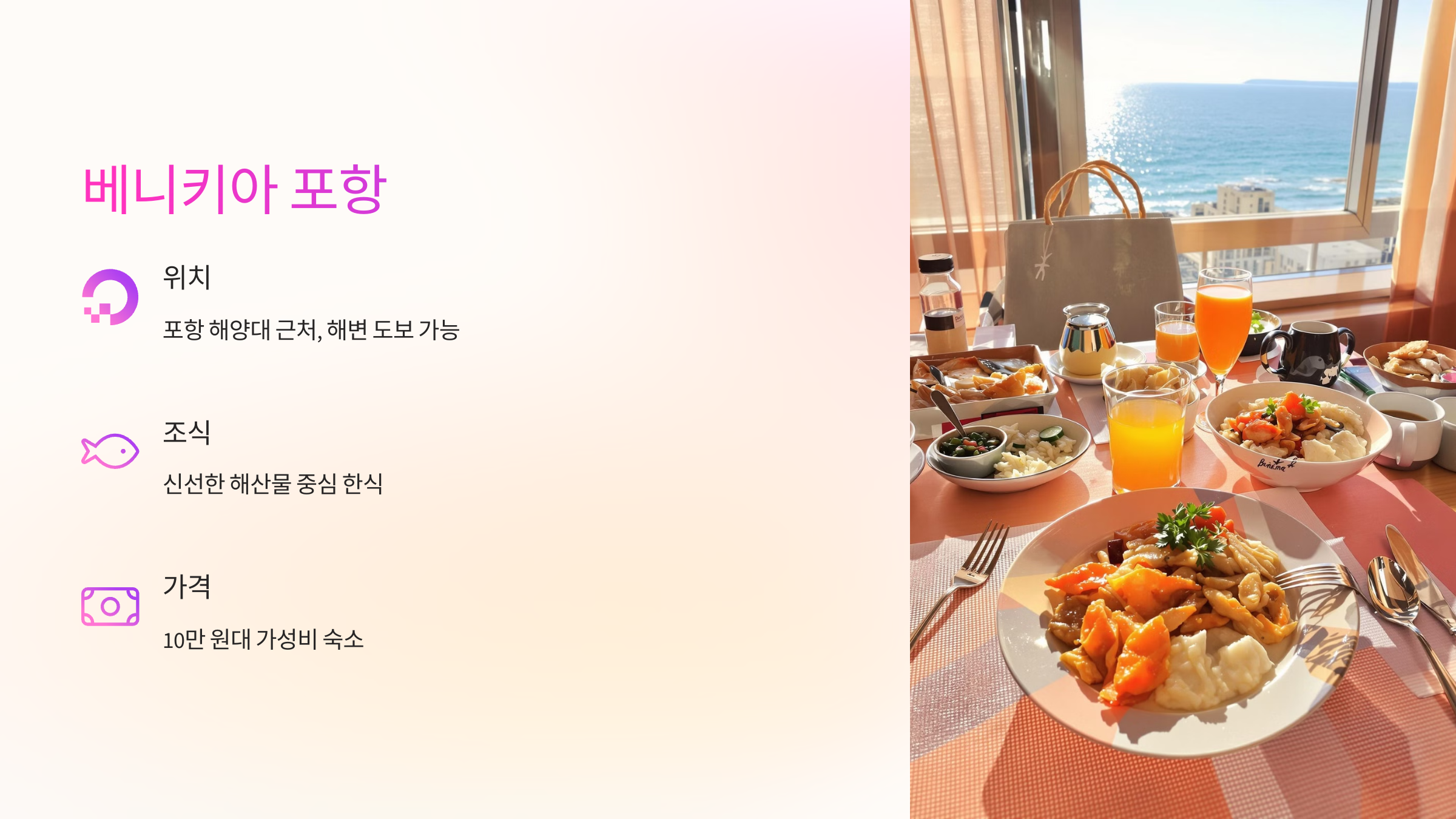 3. 베니키아 포항 – 해산물 조식과 바다 산책