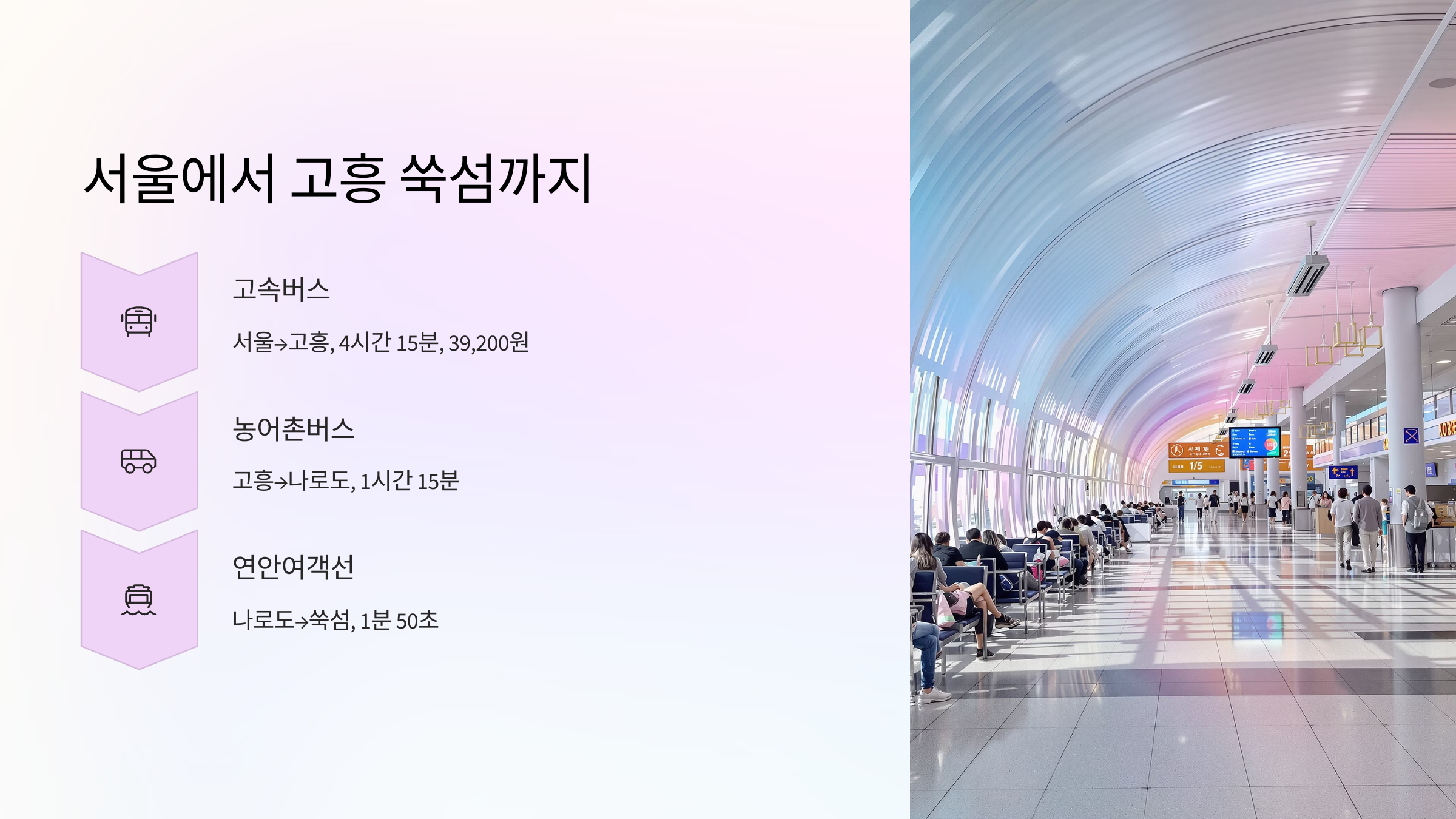 1. 서울에서 고흥 쑥섬까지의 교통편