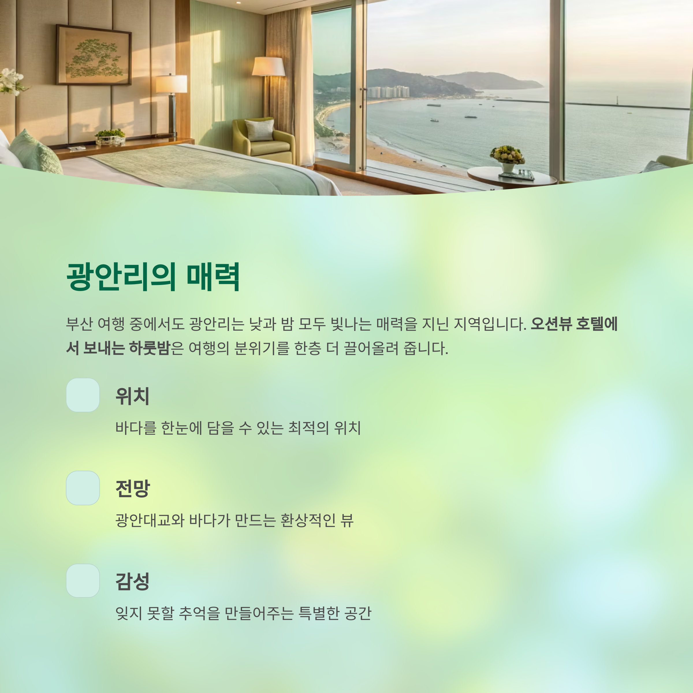 이 글에서는 광안리 바다를 한눈에 담을 수 있는 오션뷰 호텔들을 추천드리며,