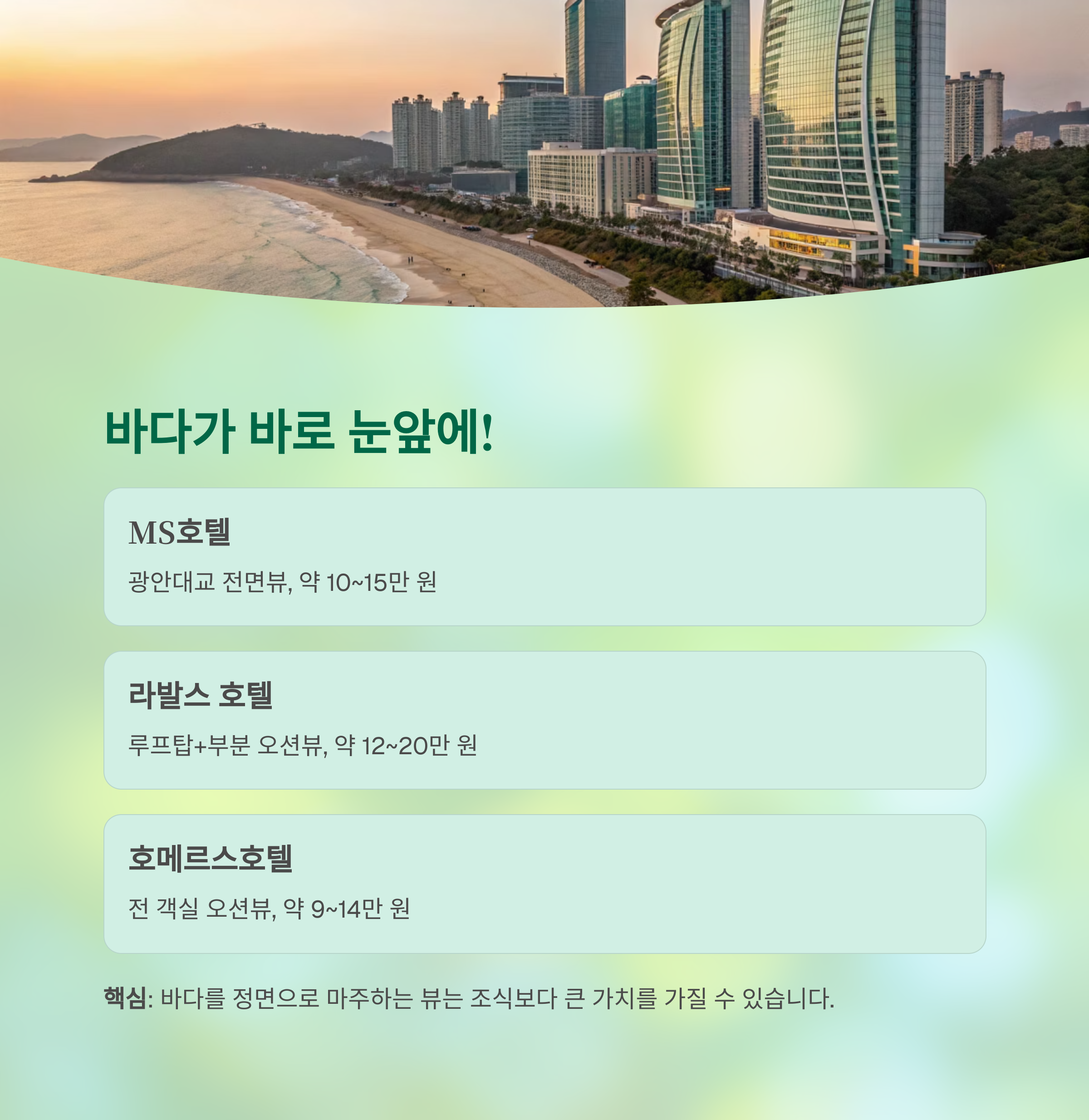 | 호텔1 (예: MS호텔) | 광안대교 전면뷰 | 약 10~15만 원 |