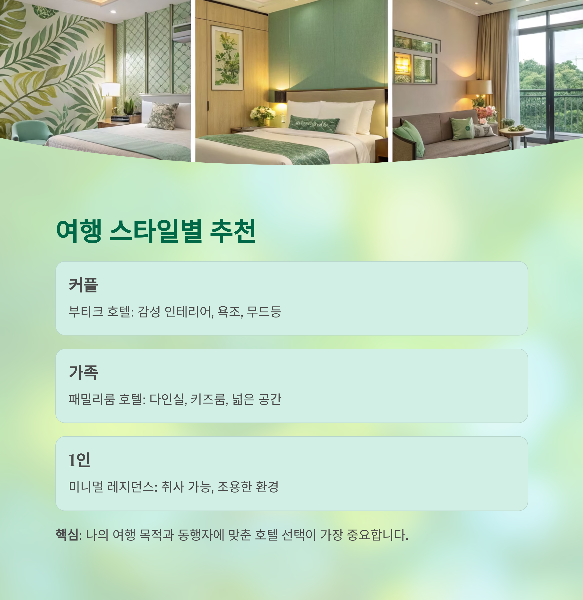 핵심: 나의 여행 목적과 동행자에 맞춘 호텔 선택이 가장 중요합니다.