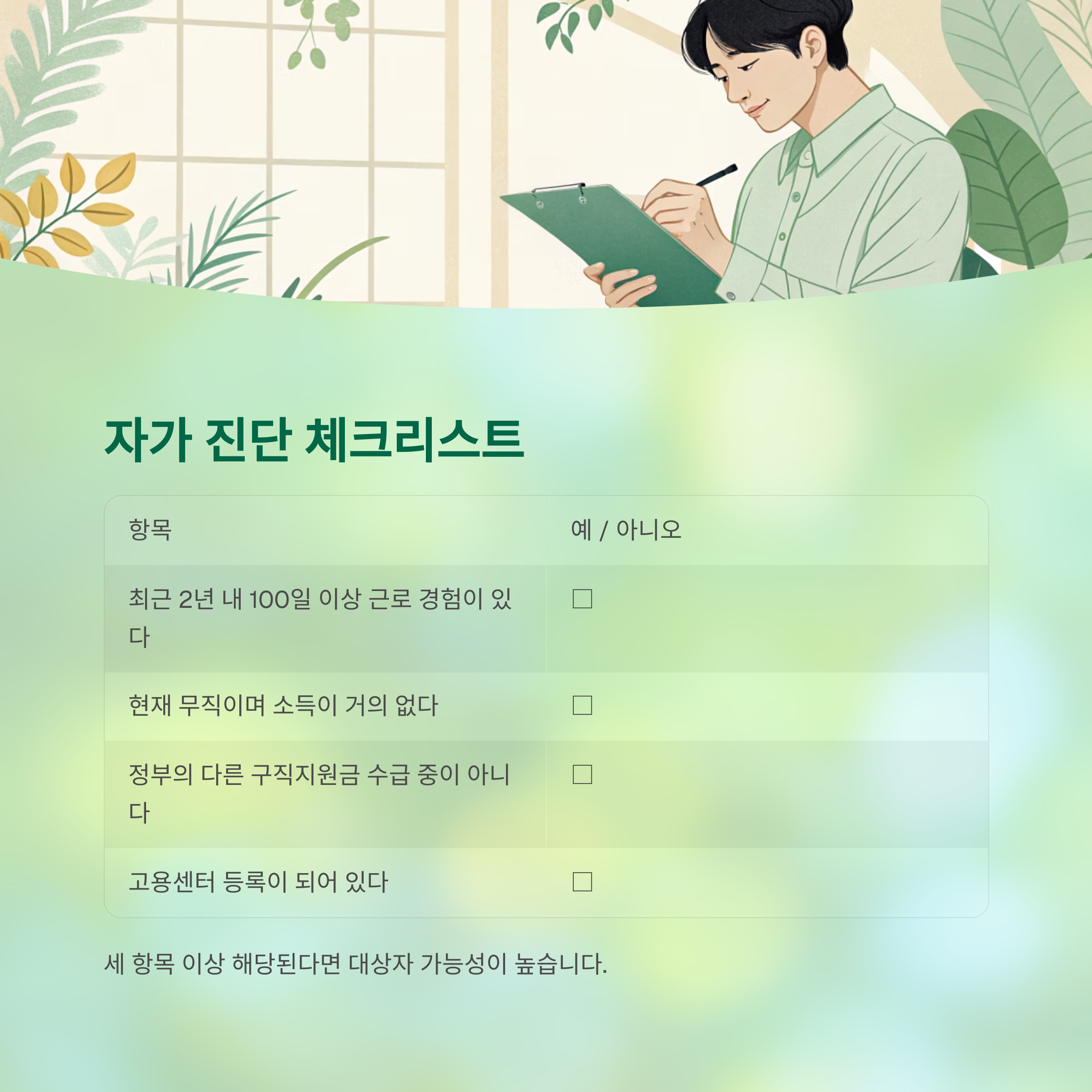 중요 포인트는 '최근 2년 이내 100일 이상 취업경험'이 있는지도 포함되어 있다는 점입니다.
