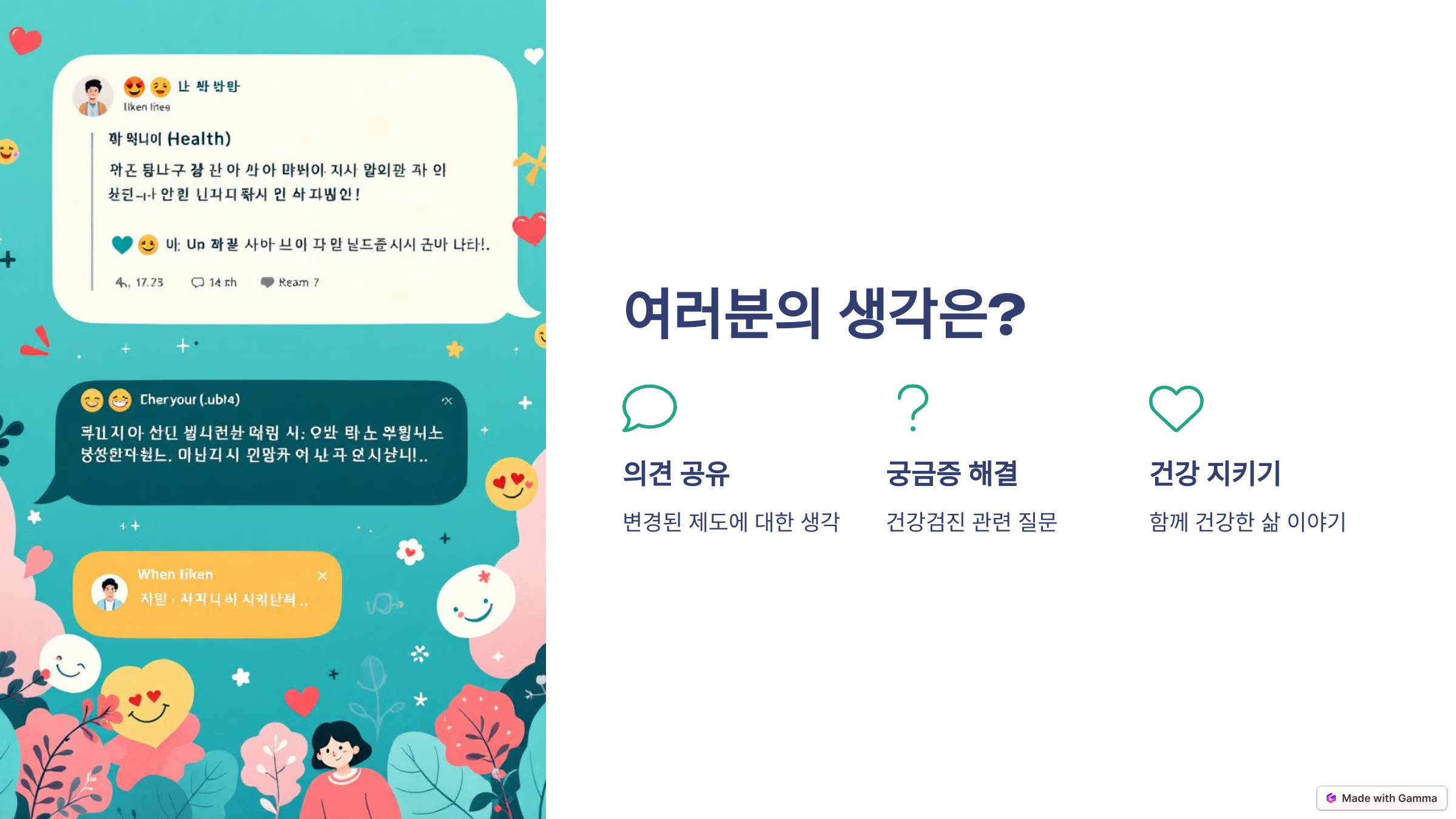 이번에 변경된 국가 건강검진 제도에 대해 어떻게 생각하시나요? 여러분의 경험이나 궁금한 점을 댓글로 남겨주세요! 함께 건강을 지키는 방법을 이야기해봐요. 😊