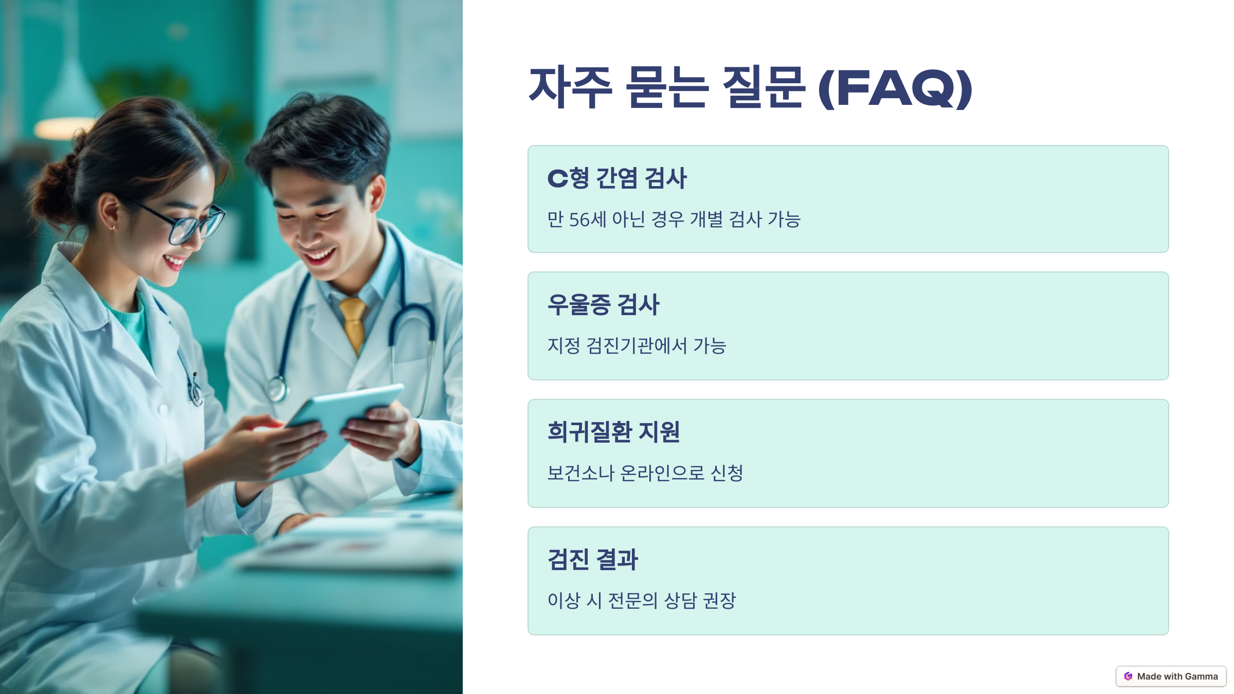 만 56세가 아닌 분들은 국가건강검진 항목에 포함되지 않지만, 필요 시 의료기관을 통해 개별적으로 검사를 받을 수 있습니다.