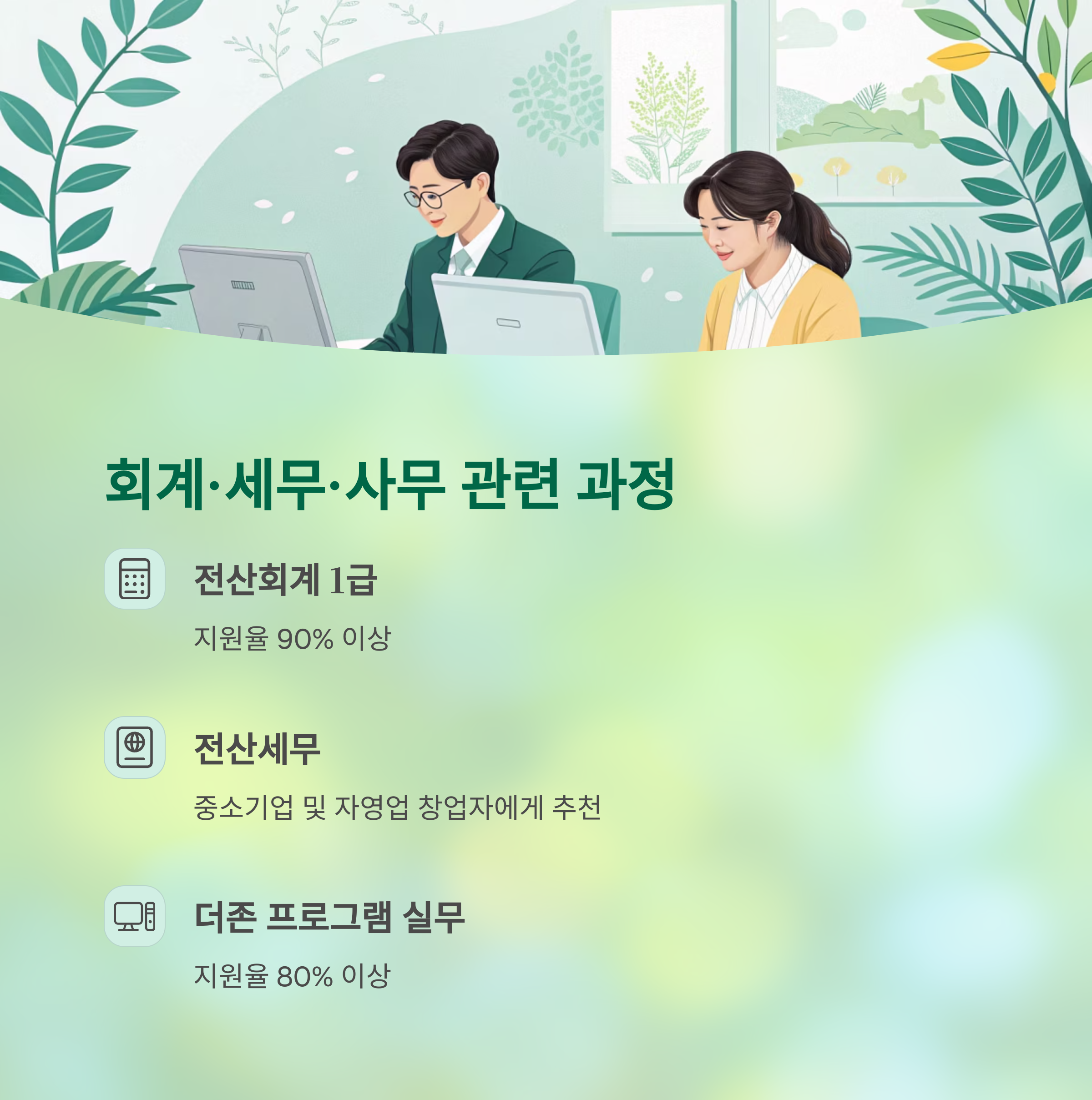 전산회계 1급, 전산세무, ERP정보관리사, 더존 프로그램 활용 등