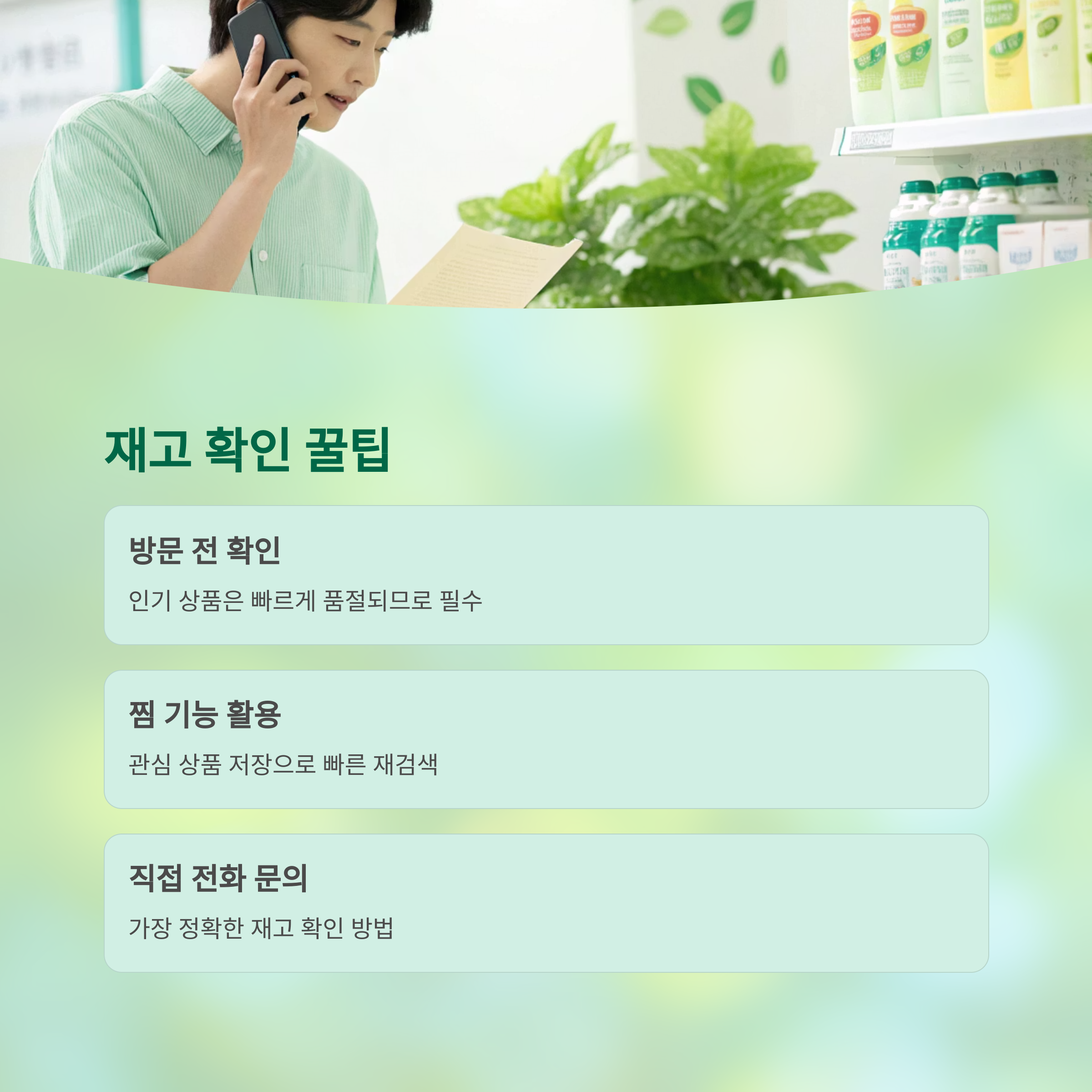인기 상품은 품절이 빠르니 미리 재고를 확인하고 방문하는 것이 좋아요. 찜해두면 필요할 때 바로 검색할 수 있어 편리하답니다. 할인 시즌이나 신상품 업데이트 정보도 놓치지 마세요! 매장에 직접 전화해서 실제 재고를 확인하는 것도 좋은 방법이에요.