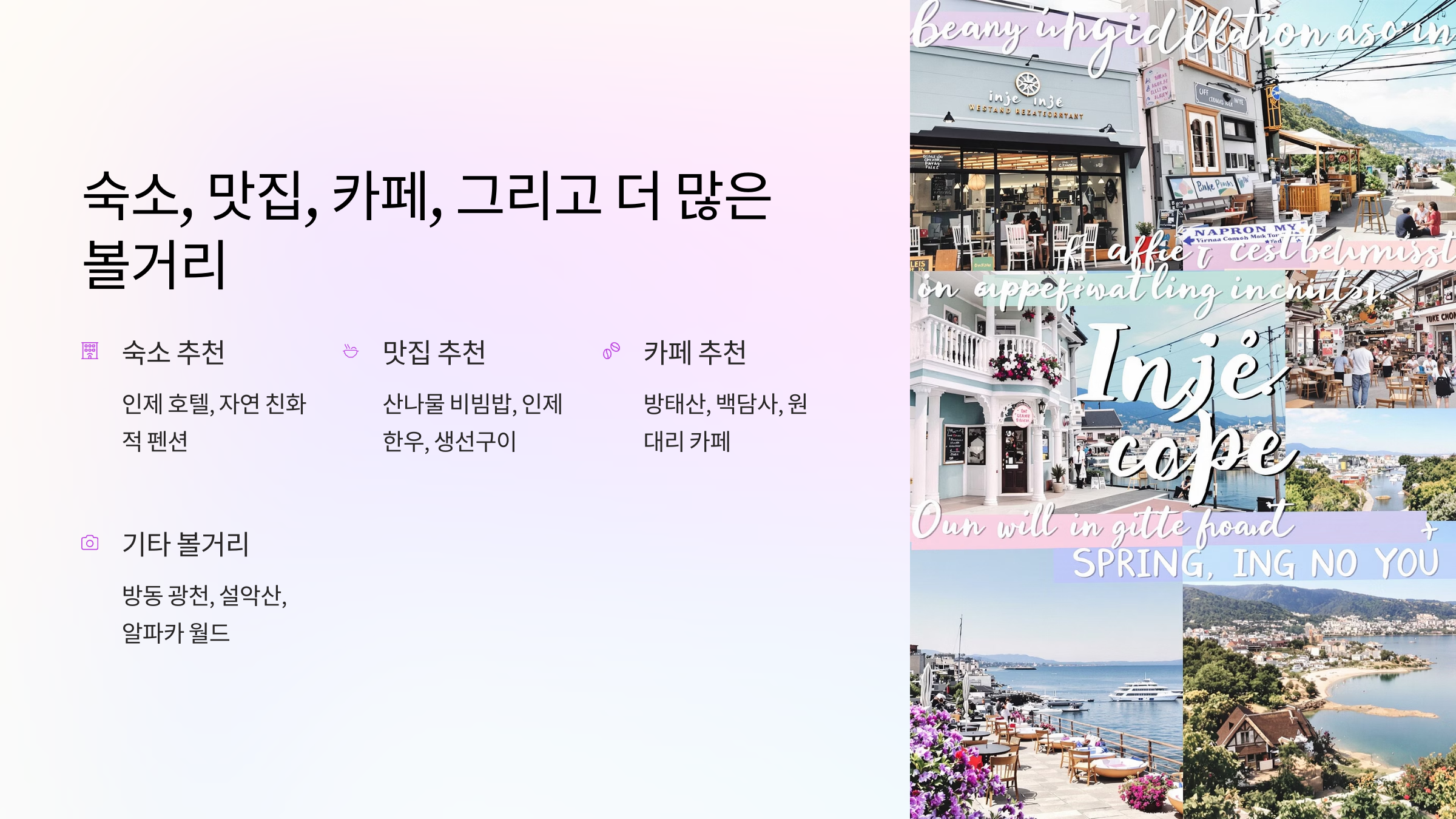 여러분도 이번 봄에는 인제로 떠나보세요. 그리고 여행을 다녀오셨다면 댓글로 여러분만의 인제 여행 꿀팁도 꼭 공유해주세요!