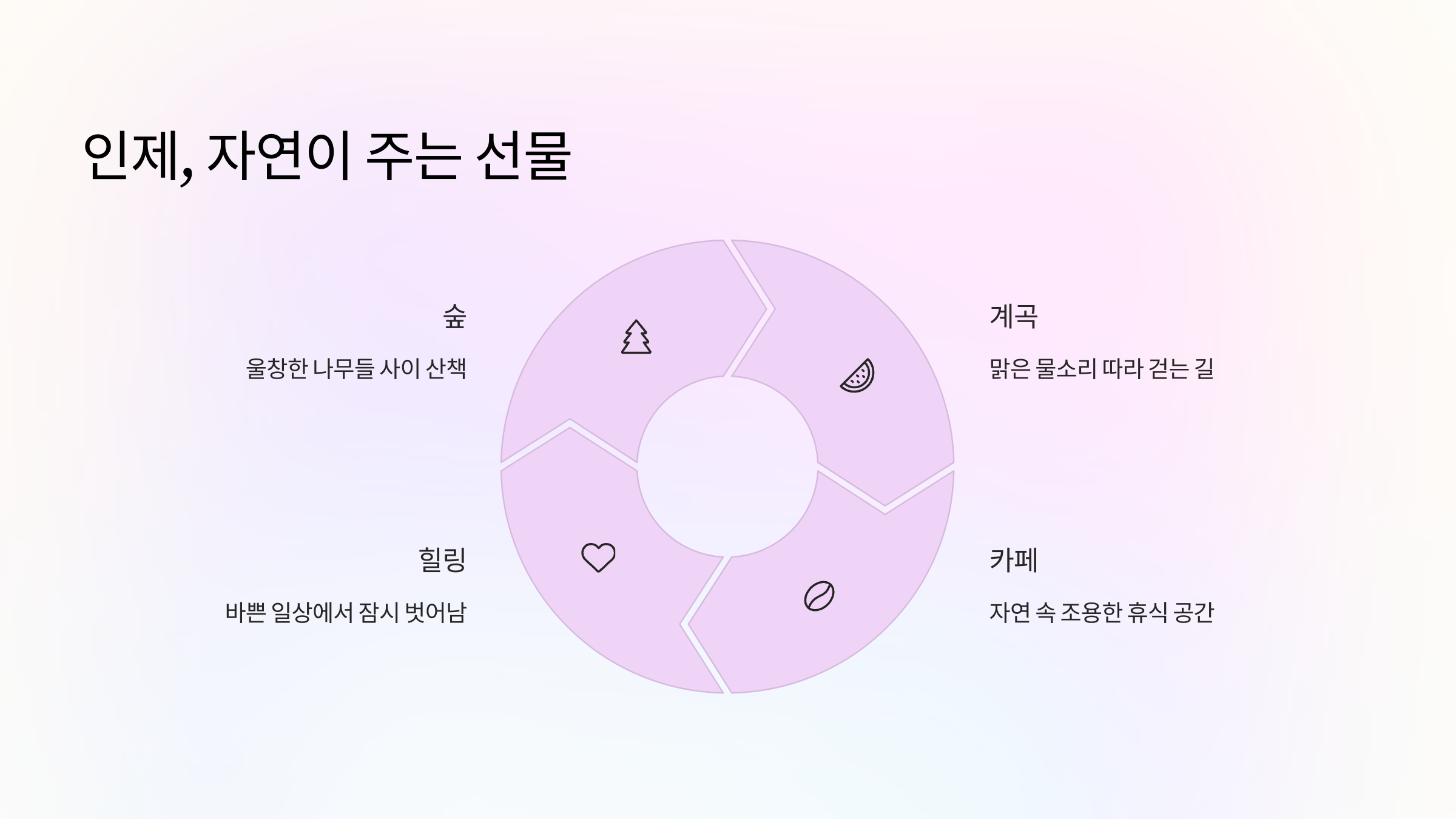 봄이 오면 어김없이 떠오르는 여행지가 있죠. 바람도, 햇살도, 공기도 달콤해지는 이 계절. 인제의 자연 속에서 진짜 힐링을 해볼 시간이에요.