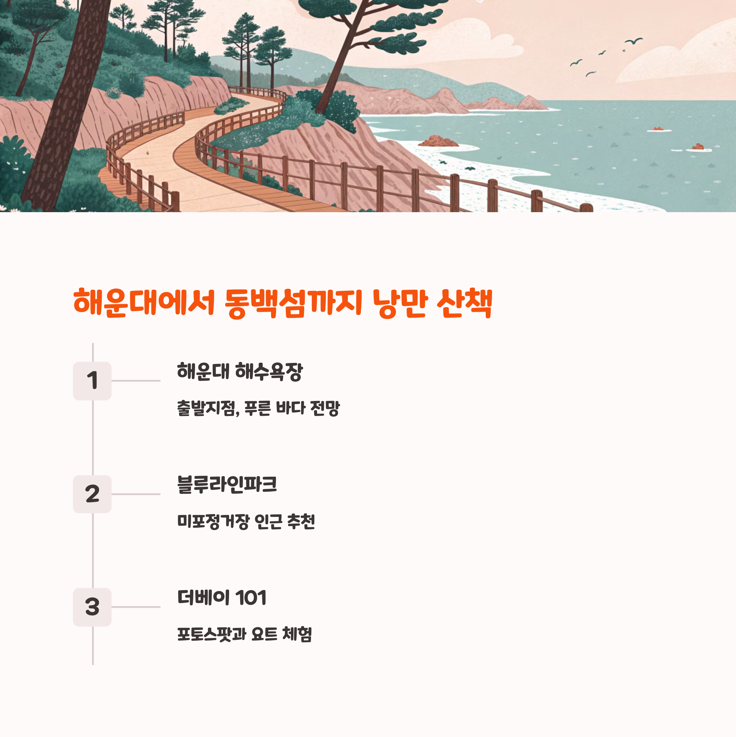 산책 코스가 등장합니다. 바다 냄새와 함께 여유를 즐겨보세요.