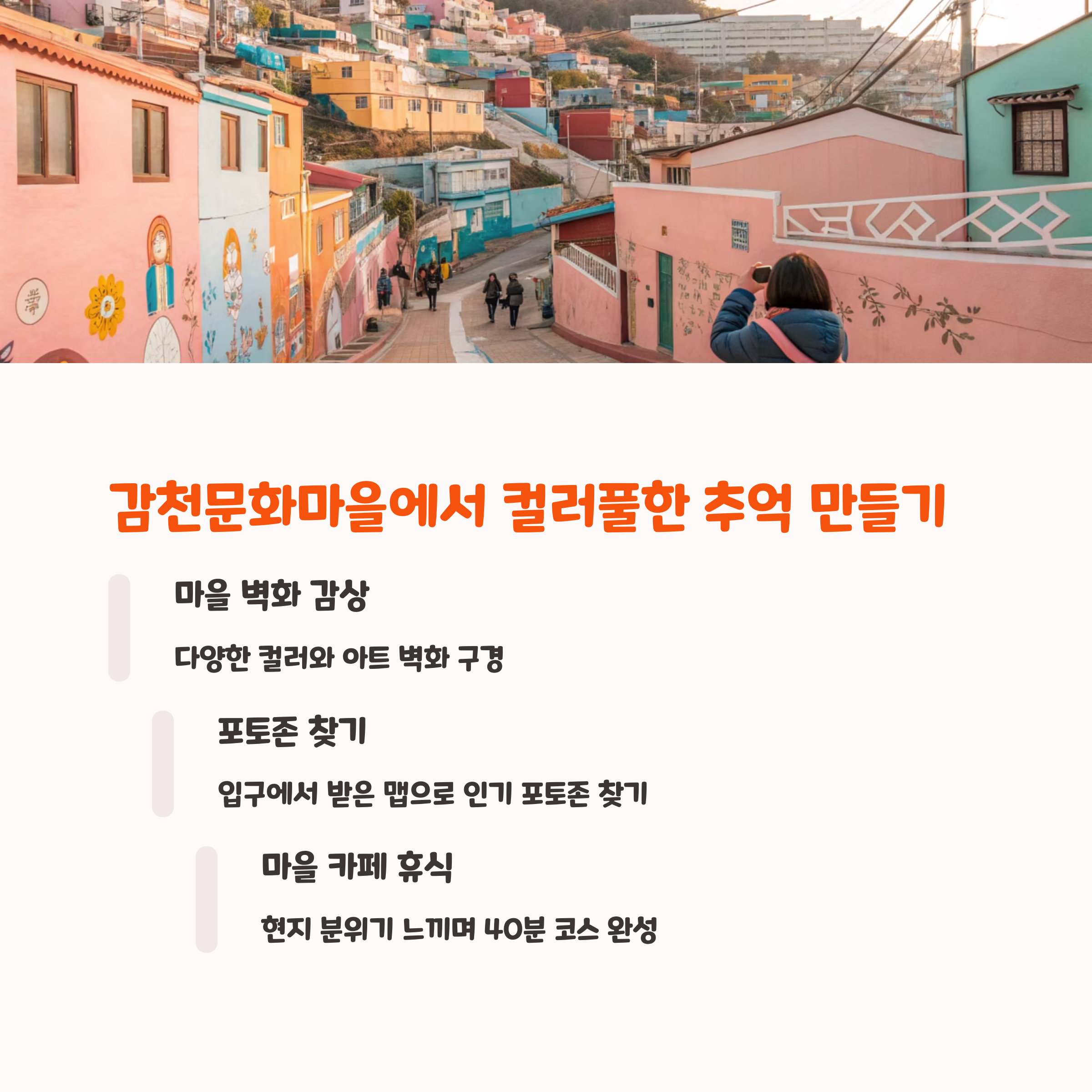 - 감천문화마을은 계단이 많으니 편한 운동화 착용이 필수입니다.