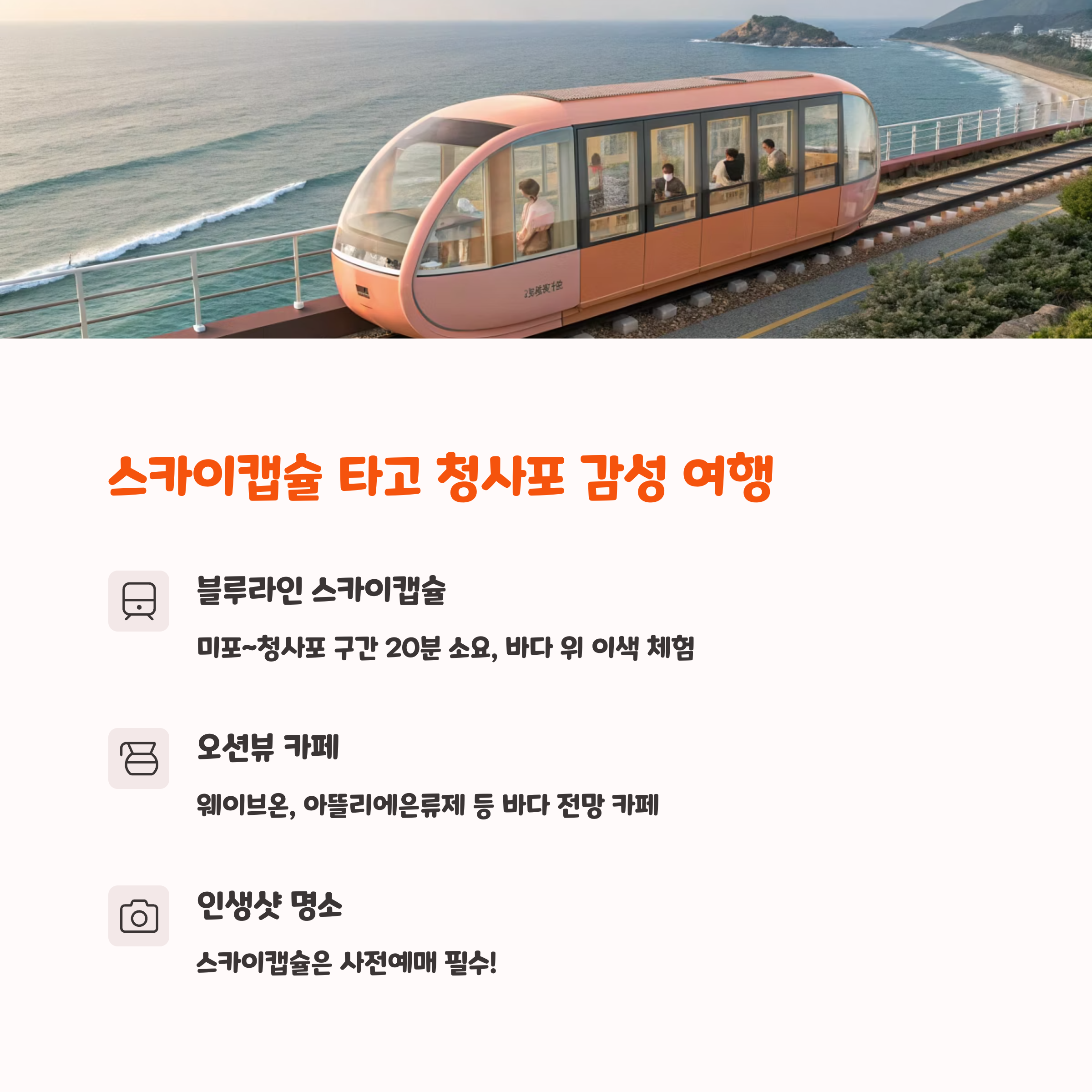 바다 위를 달리는 해변열차와 스카이캡슐은 부산의 핫한 액티비티죠.