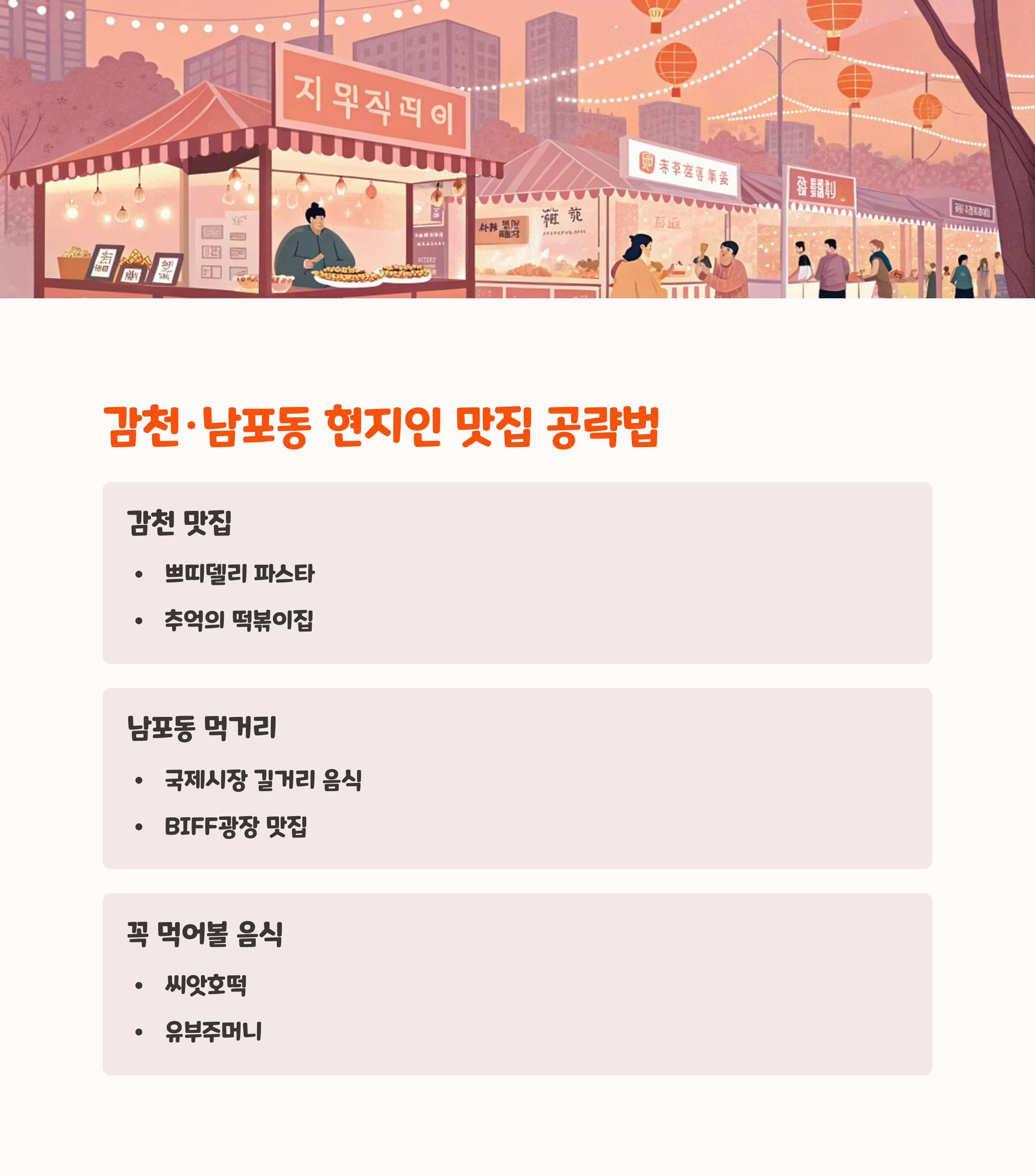 감천과 남포동의 현지 맛집 추천 리스트