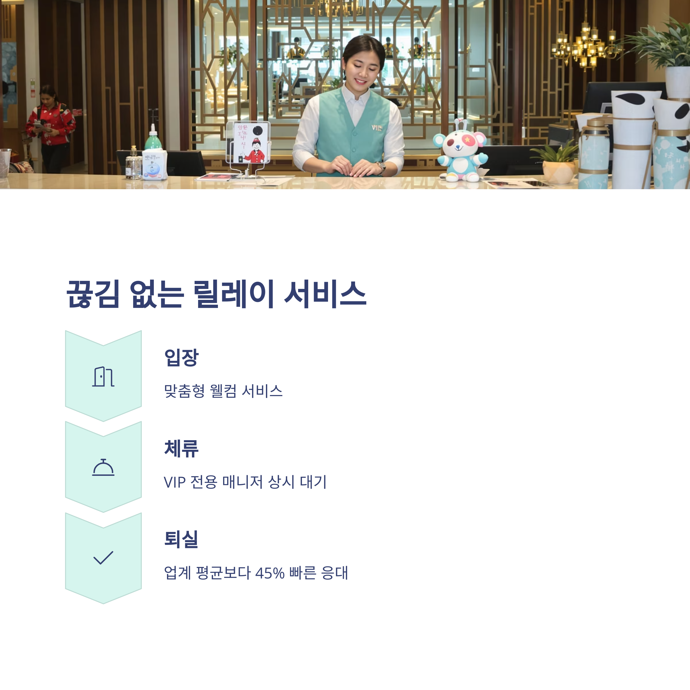 방문 목적, 취향, 이용 시간에 따라 맞춤 서비스를 제공하며, VIP 고객 전용 매니저와 컨시어지 팀이