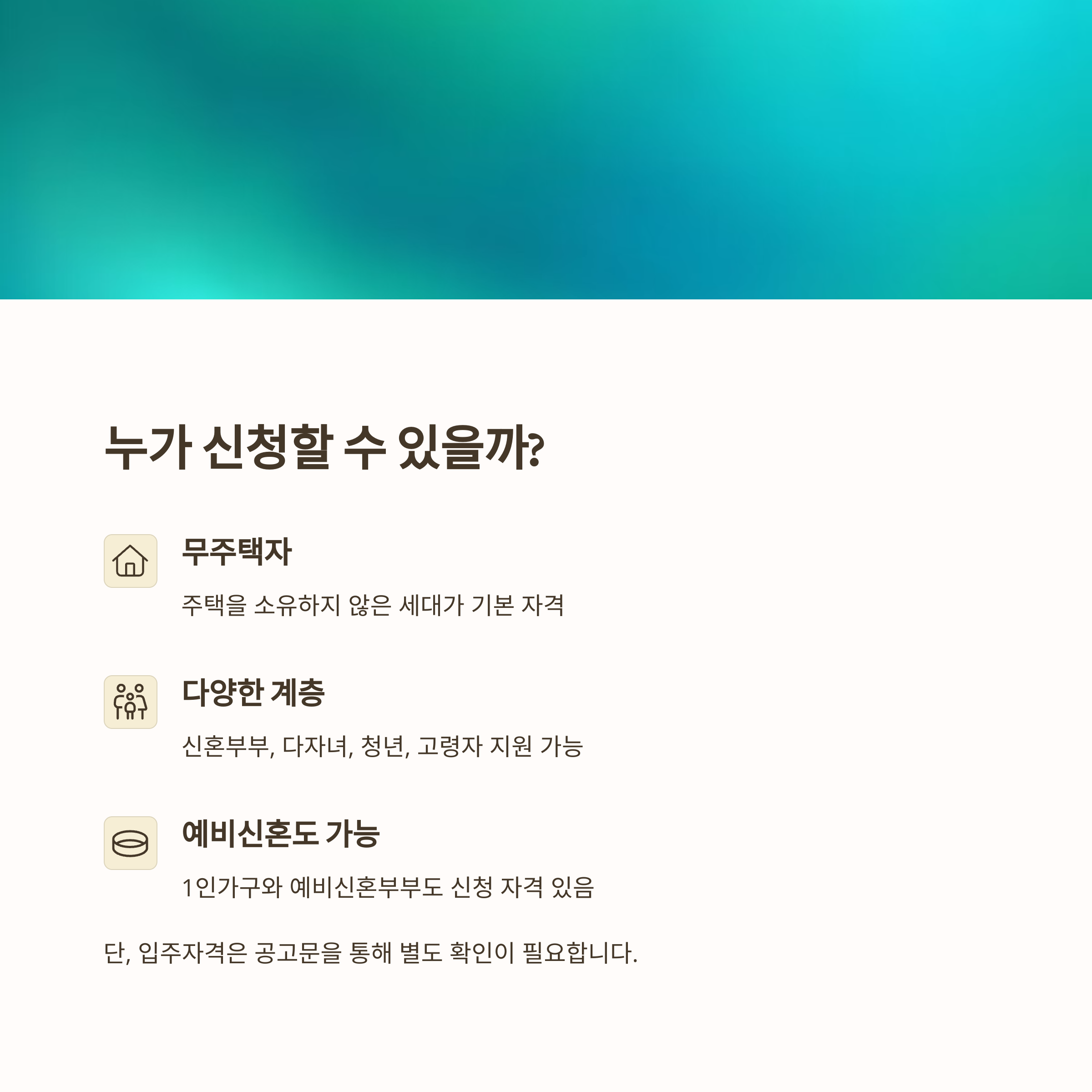 - 예비 신혼부부 가능 (6개월 내 혼인 예정 포함)