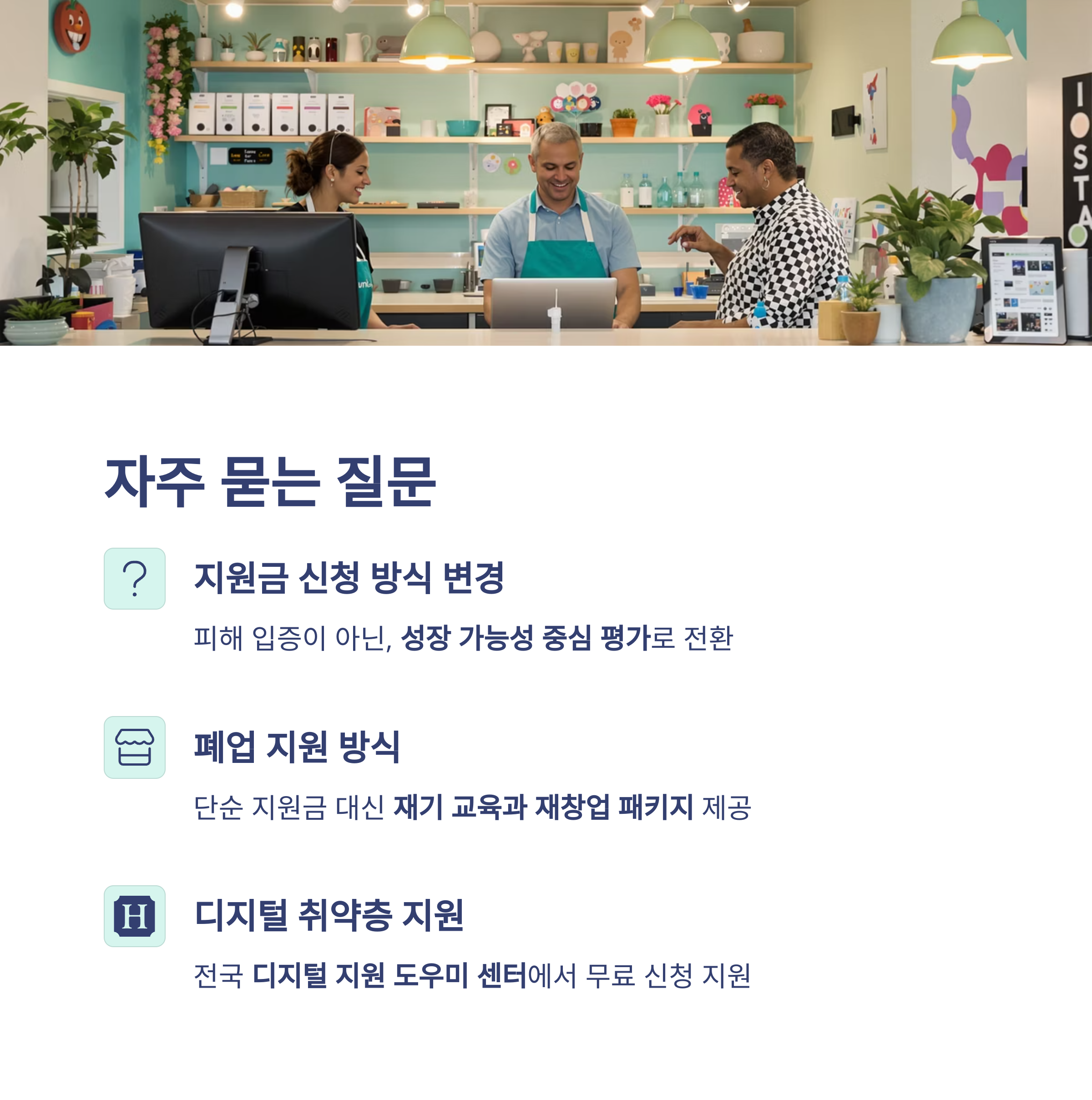 → 폐업 지원금은 사라졌지만, 재기 교육과 재창업 패키지로 전환되어 더 실질적인 도움이 됩니다.