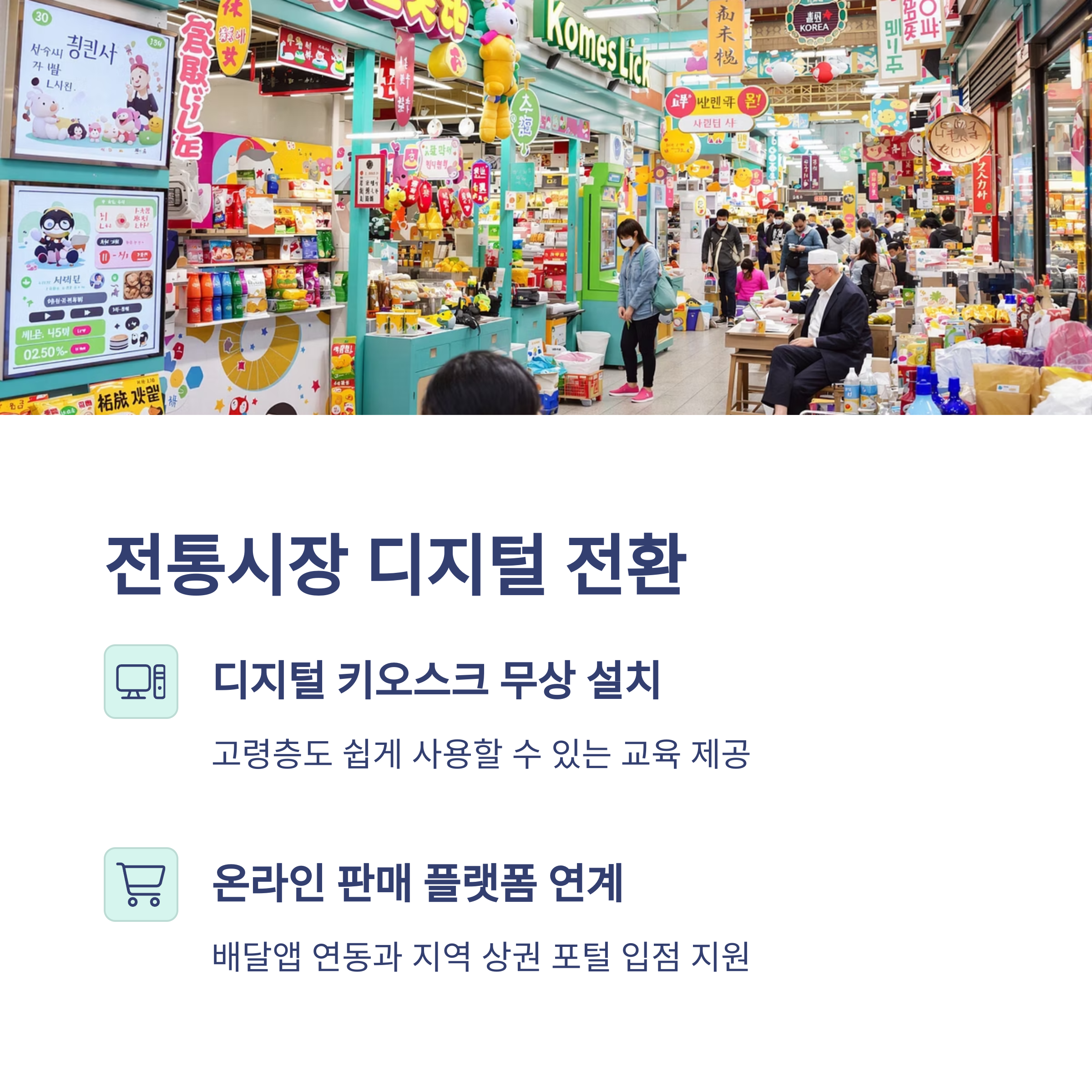 전통시장과 골목상권 활성화를 위한 디지털 키오스크, 온라인 판매 플랫폼 연계 사업이 2025년부터 본격화됩니다.