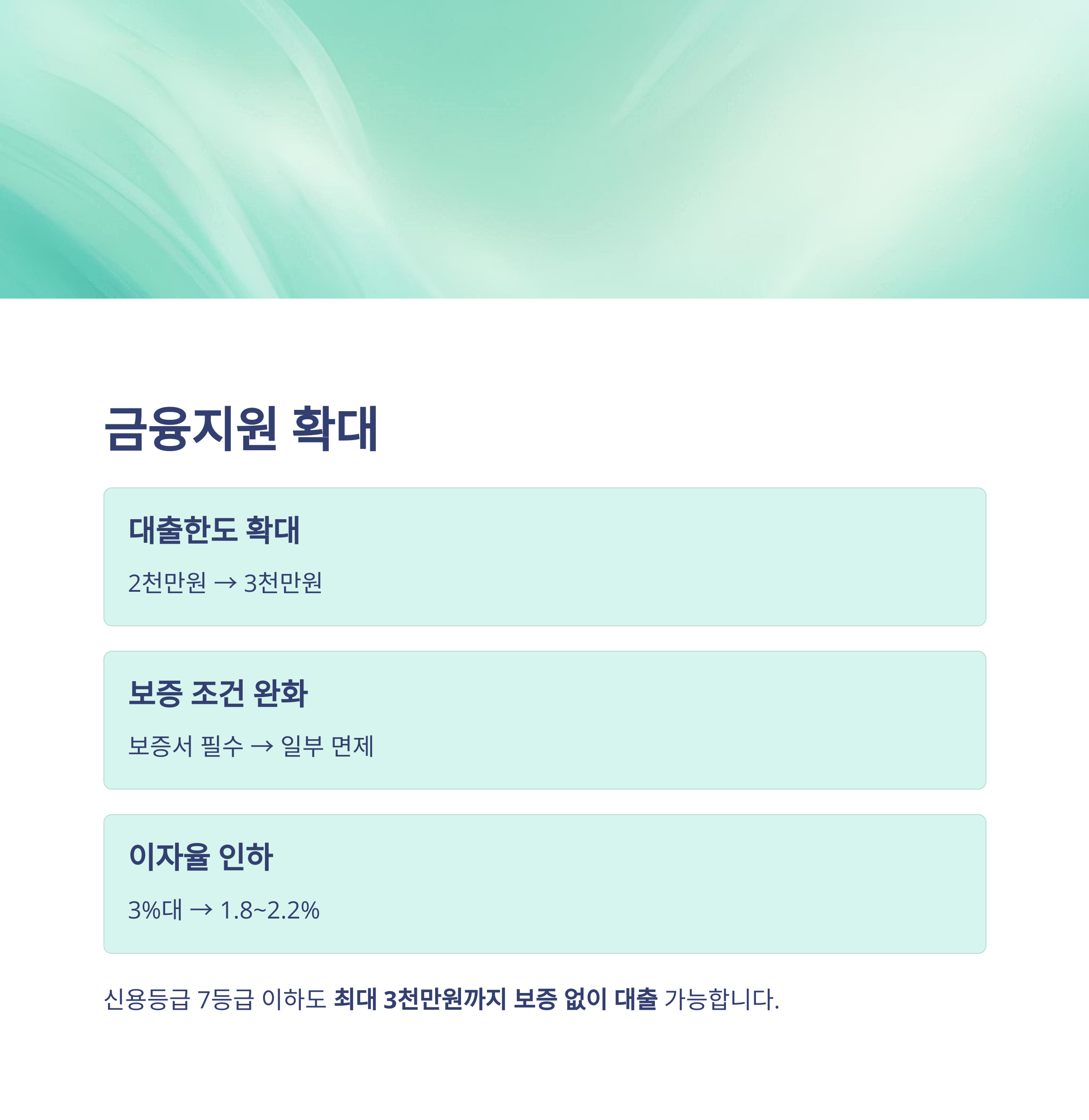 2025년 기준, 신용등급 7등급 이하 소상공인도 최대 3천만 원까지 보증 없이 대출받을 수 있으며,