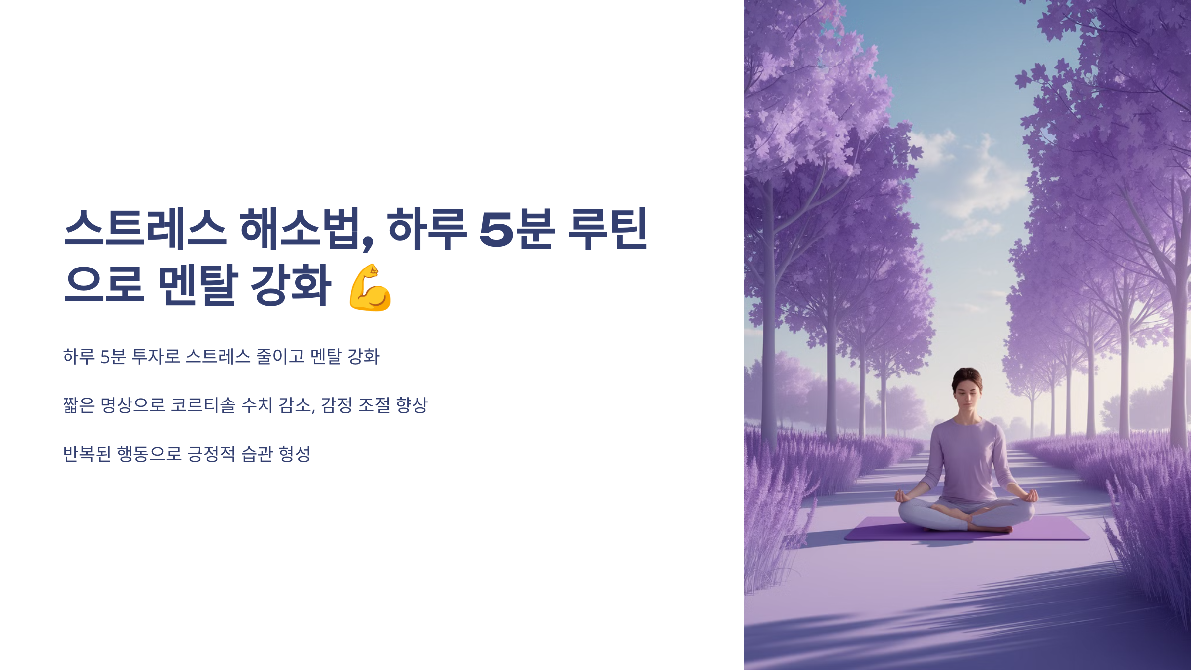 하루 5분이면 스트레스를 확 줄이고 멘탈을 강하게 만들 수 있다는 사실, 알고 계셨나요? 🤔 현대인이라면 누구나 크고 작은 스트레스를 안고 살아가지만, 이를 효과적으로 관리하지 않으면 몸과 마음이 금방 지쳐버립니다. 그래서 오늘은 바쁜 일상 속에서도 쉽게 실천할 수 있는 ‘하루 5분 멘탈 강화 루틴’을 소개해 드릴게요!