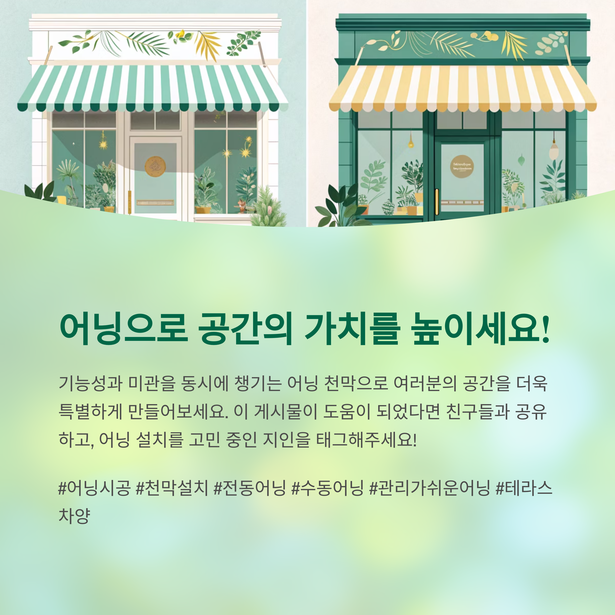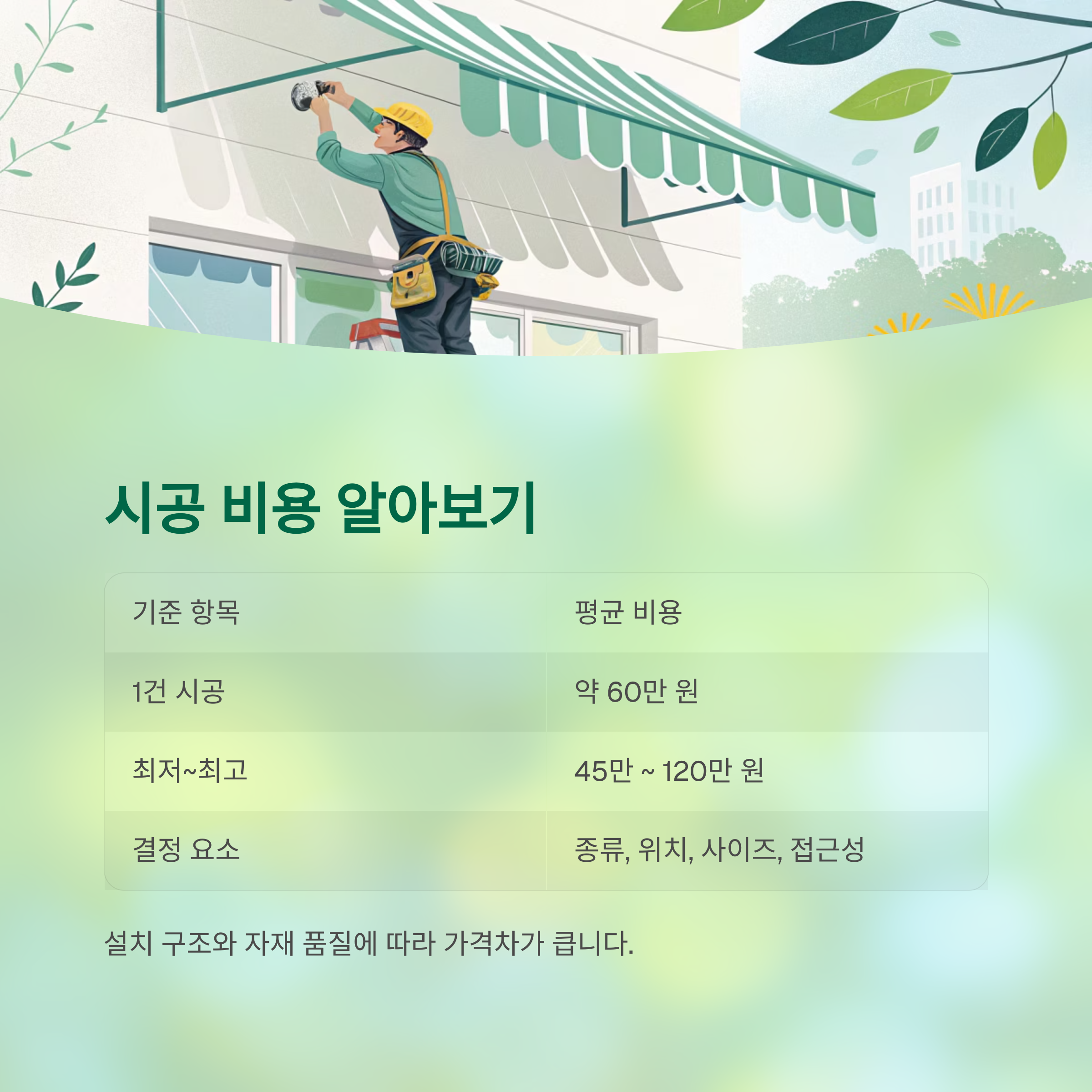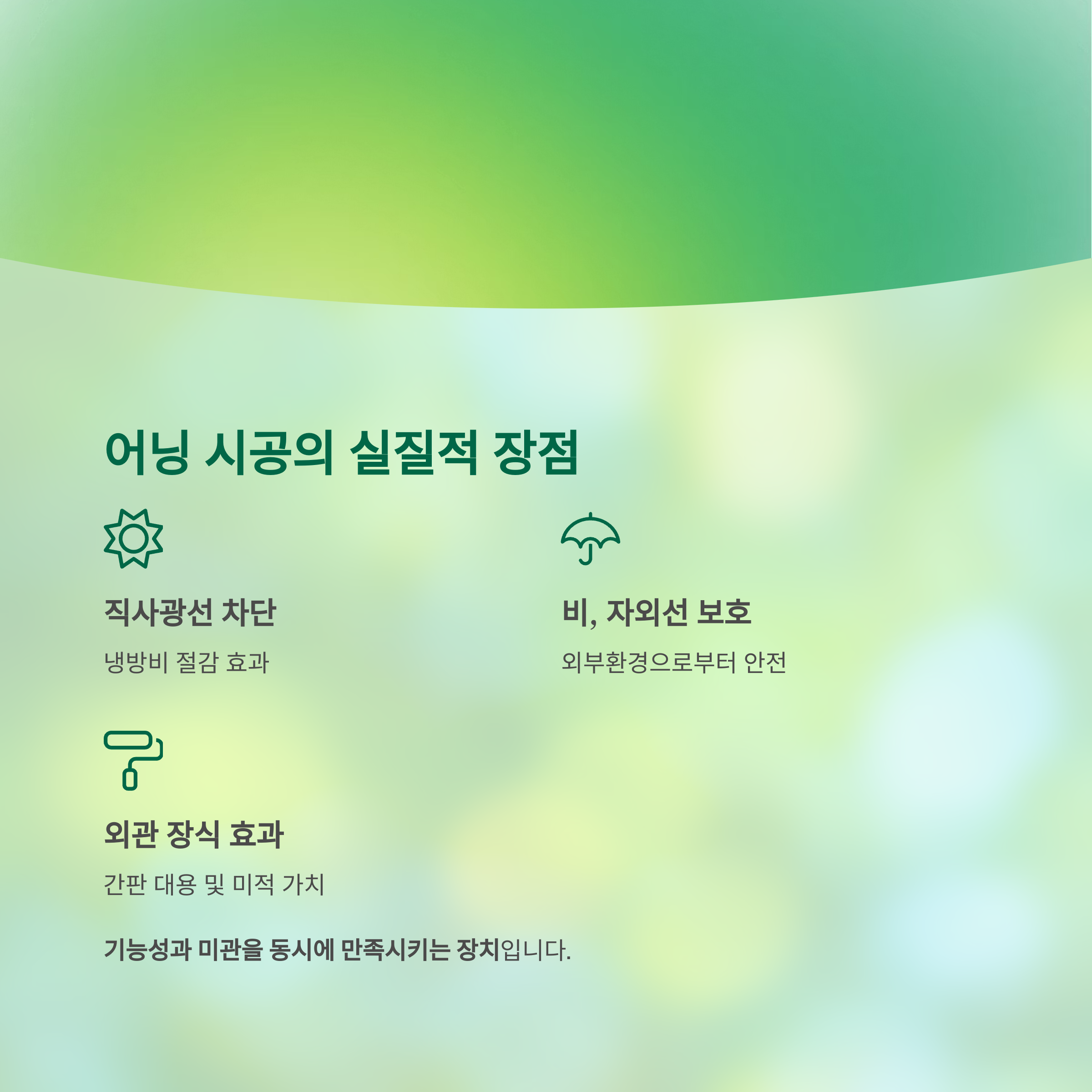 - 어닝 크기: 가로 + 돌출 길이 기준으로 맞춤 제작