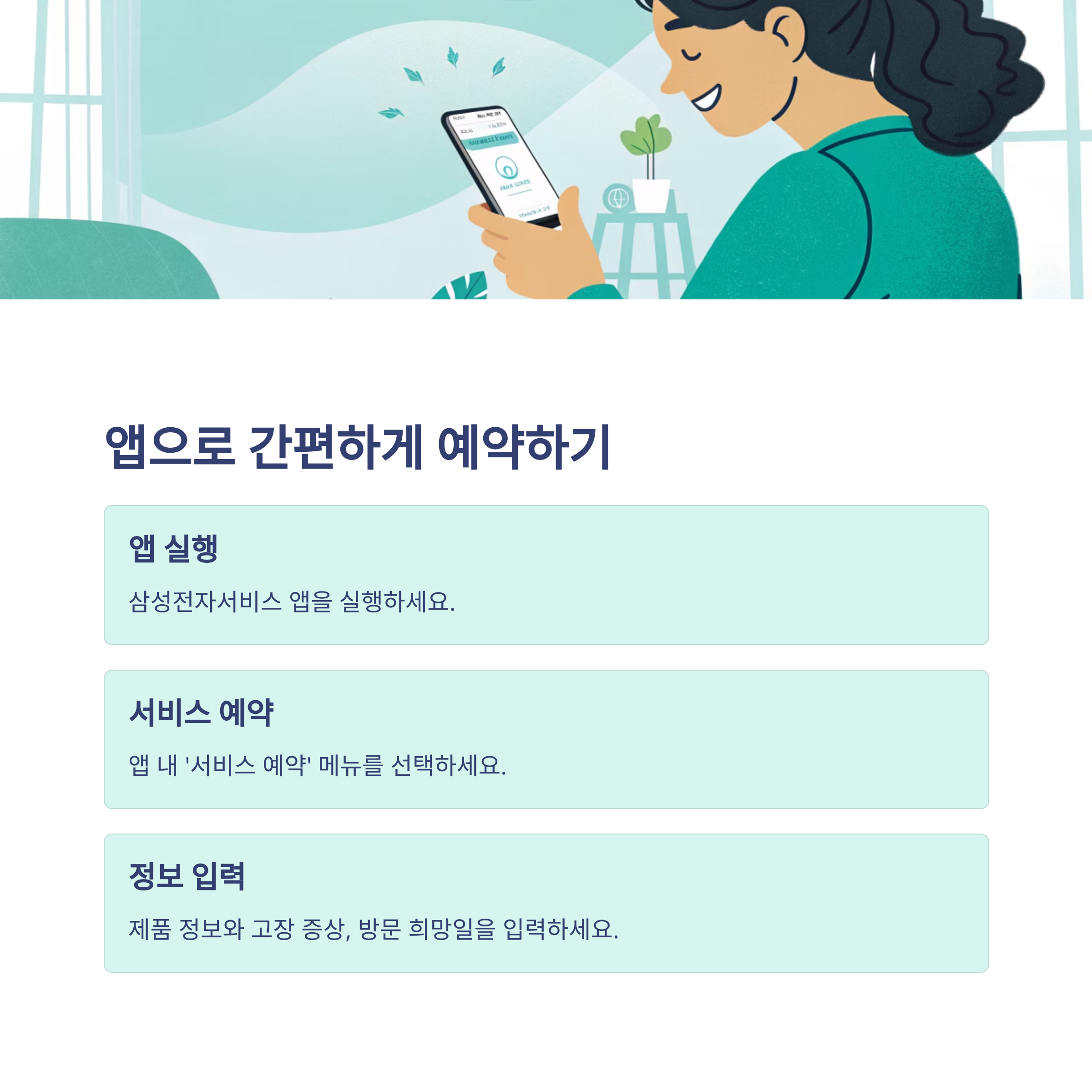 • 안내에 따라 진행: 온라인 홈페이지와 유사한 방식으로 제품 정보, 고장 증상, 방문 희망일 등을 입력하여 예약합니다.