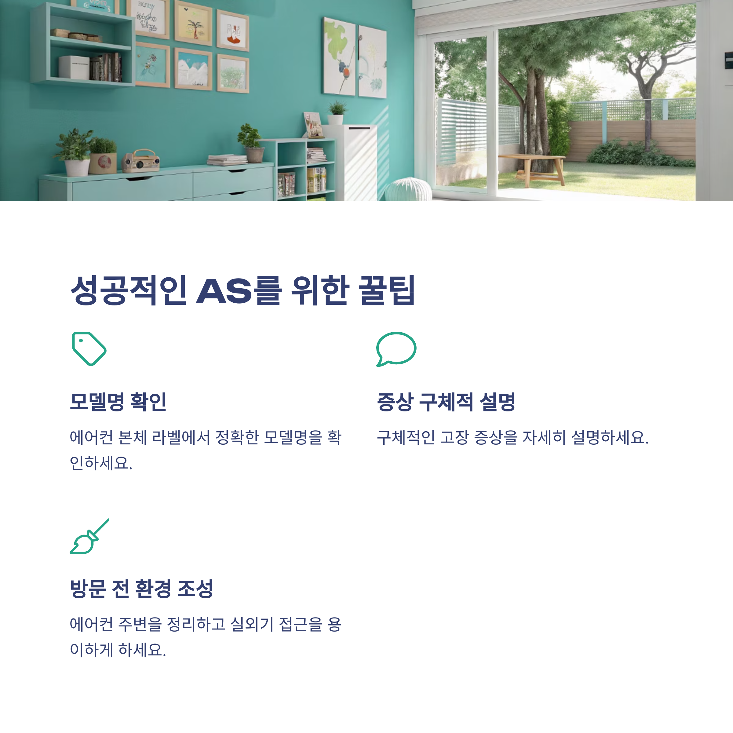 • 성수기 대비 사전 점검: 여름철 성수기에는 AS 접수가 폭주하여 방문까지 시간이 오래 걸릴 수 있습니다. 미리 에어컨을 점검하고 필요한 경우 사전 점검 서비스를 이용하는 것이 좋습니다.