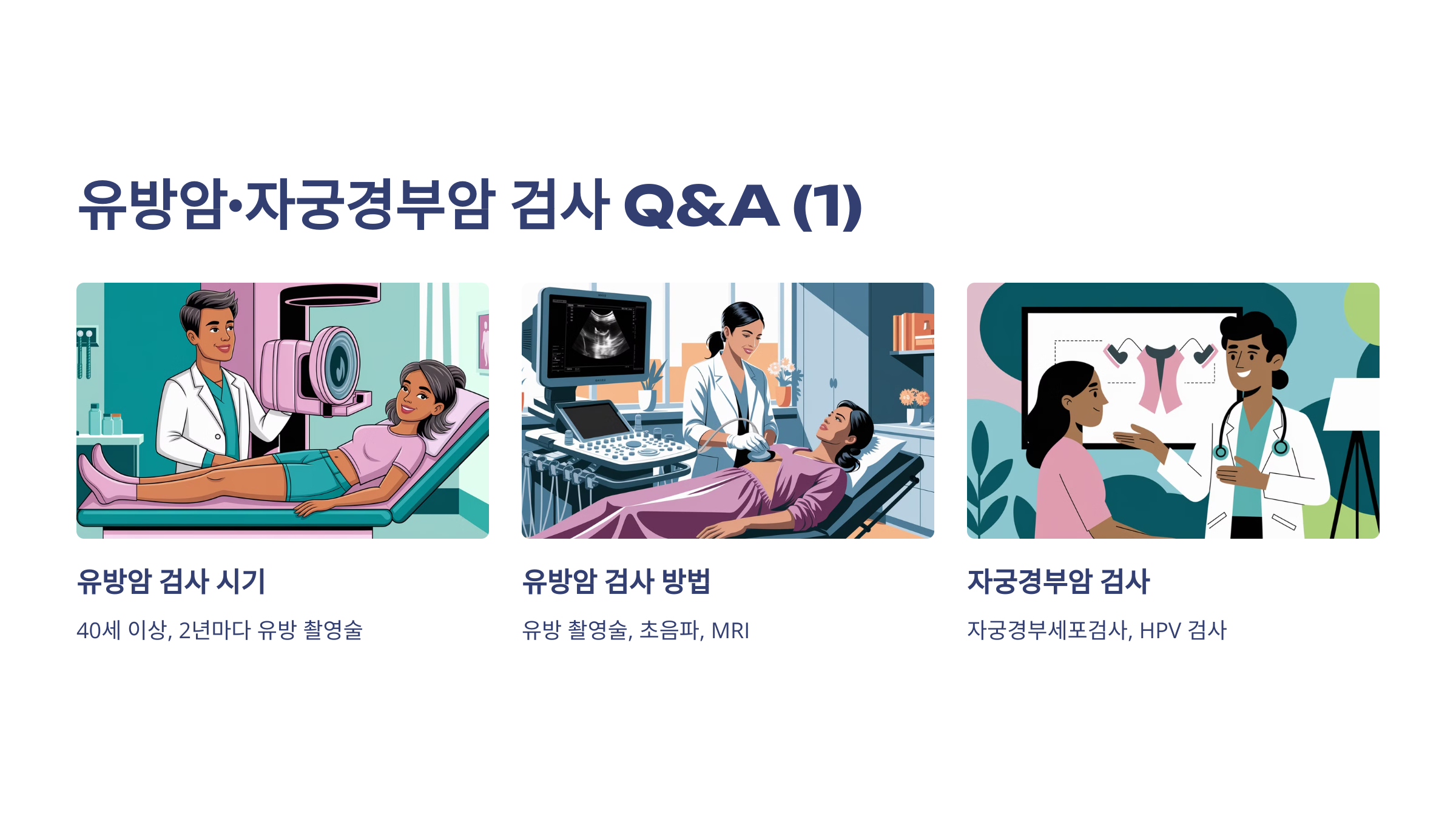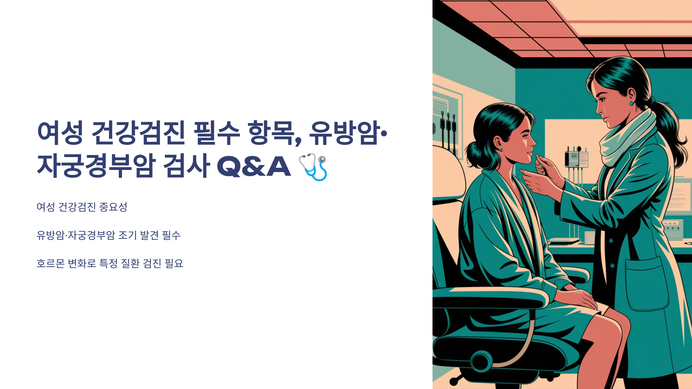 여성이라면 꼭 챙겨야 할 건강검진! 특히 유방암과 자궁경부암 검사는 조기 발견이 중요해요. 하지만 검진 방법, 주기, 검사 후 주의할 점 등에 대해 궁금한 게 많으시죠? 🤔 오늘은 여성 건강검진 필수 항목과 유방암·자궁경부암 검사에 대한 Q&A를 준비했어요.
