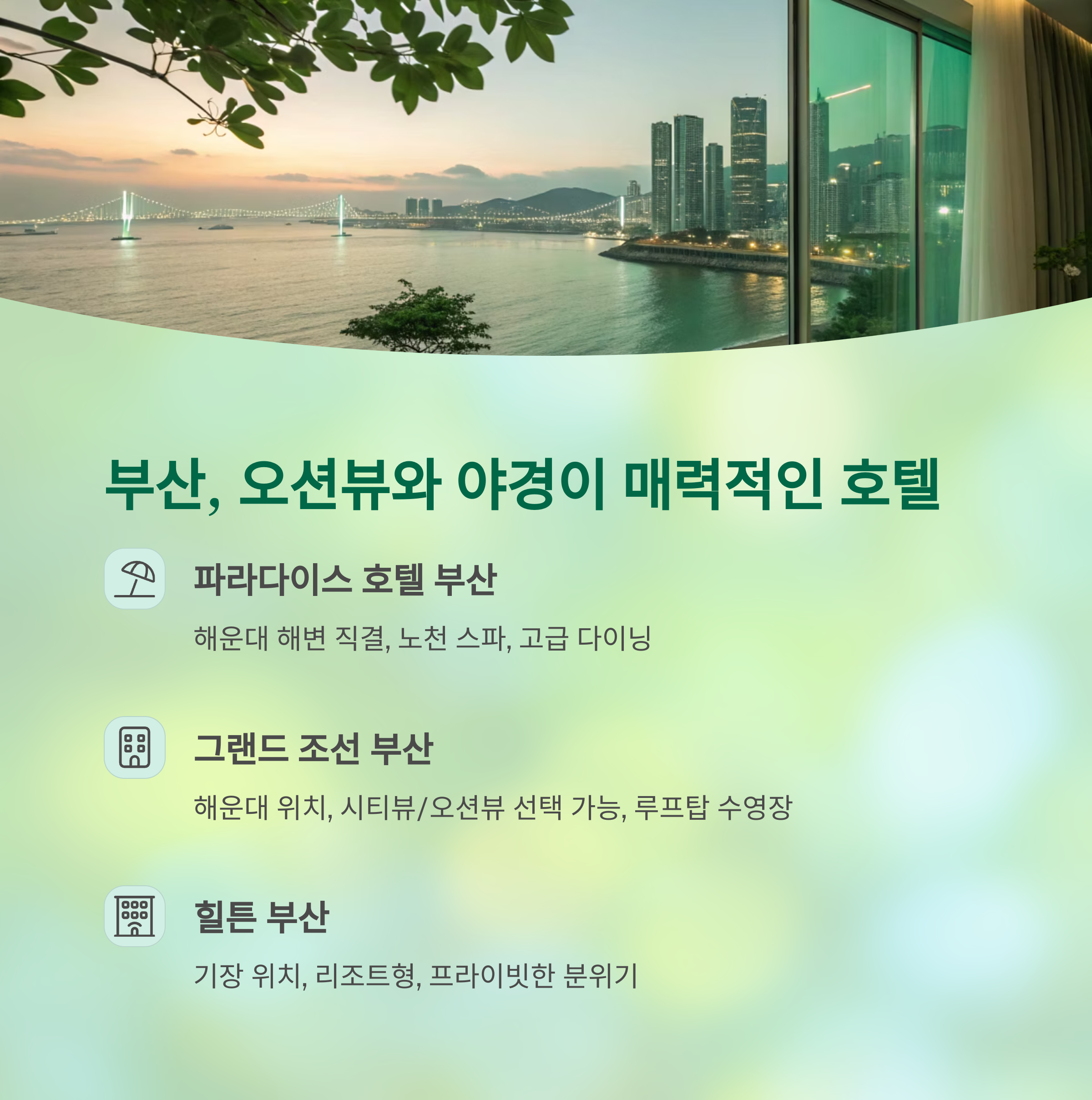 부산 호텔은 야경과 바다를 함께 즐기고 싶은 분들에게 추천됩니다.