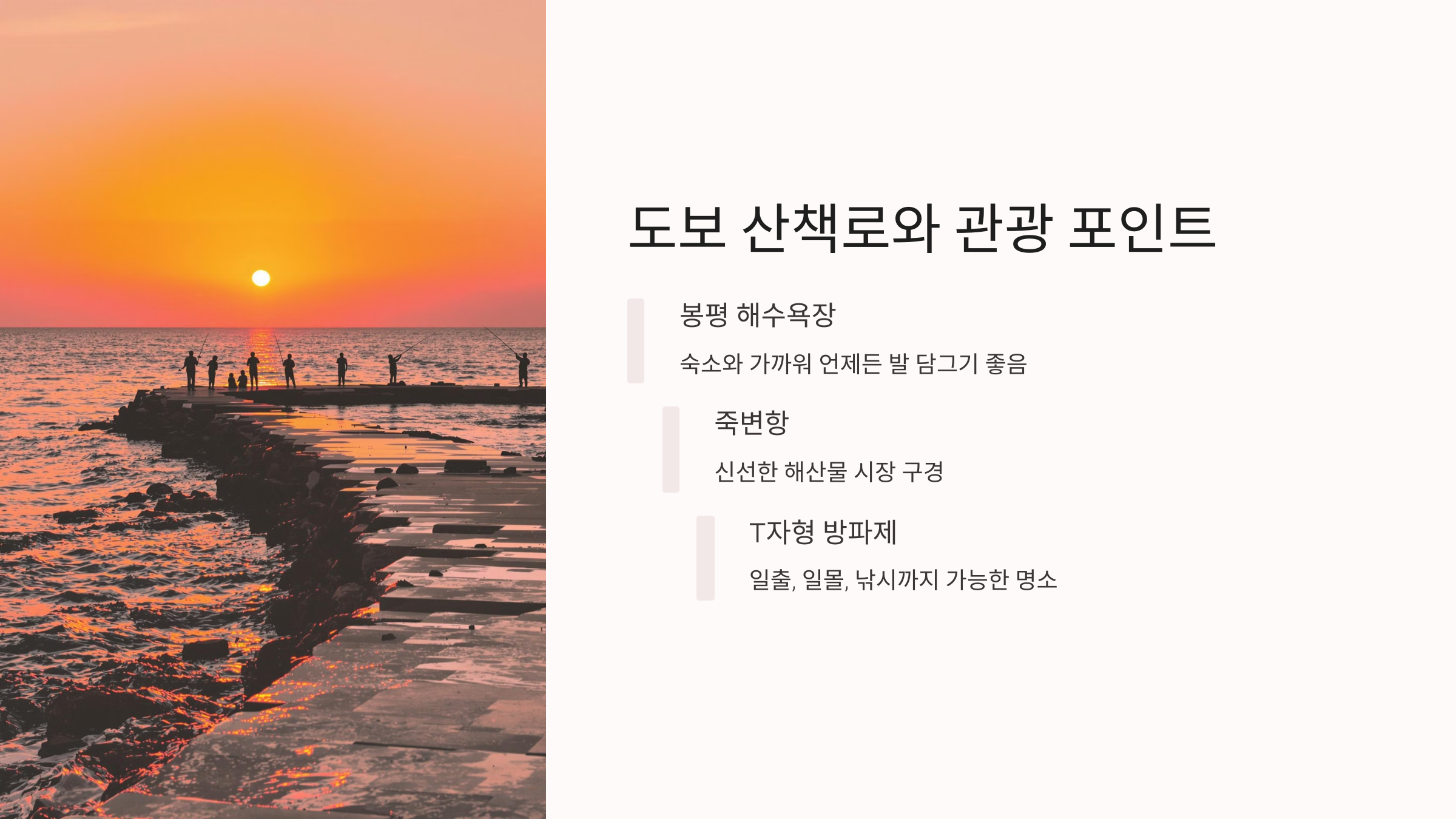 - T자형 방파제 – 일출, 일몰, 낚시까지 가능한 명소