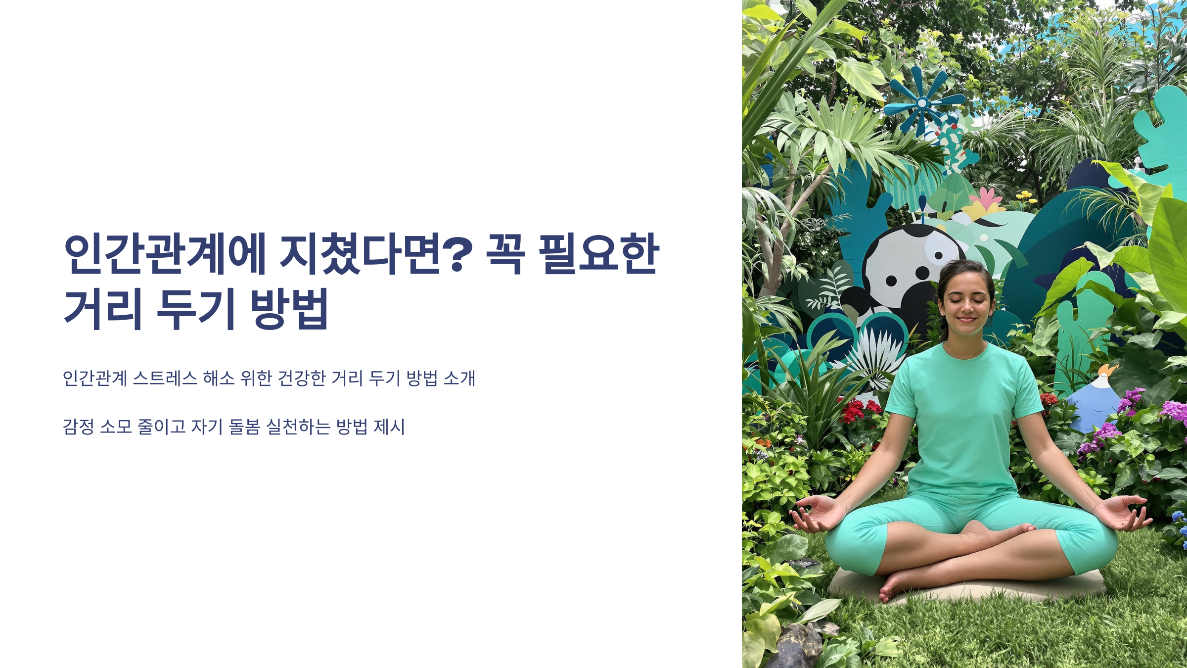 여러분은 인간관계에 지칠 때 어떻게 거리 두기를 실천하시나요? 여러분만의 노하우를 댓글로 공유해주세요! 💬