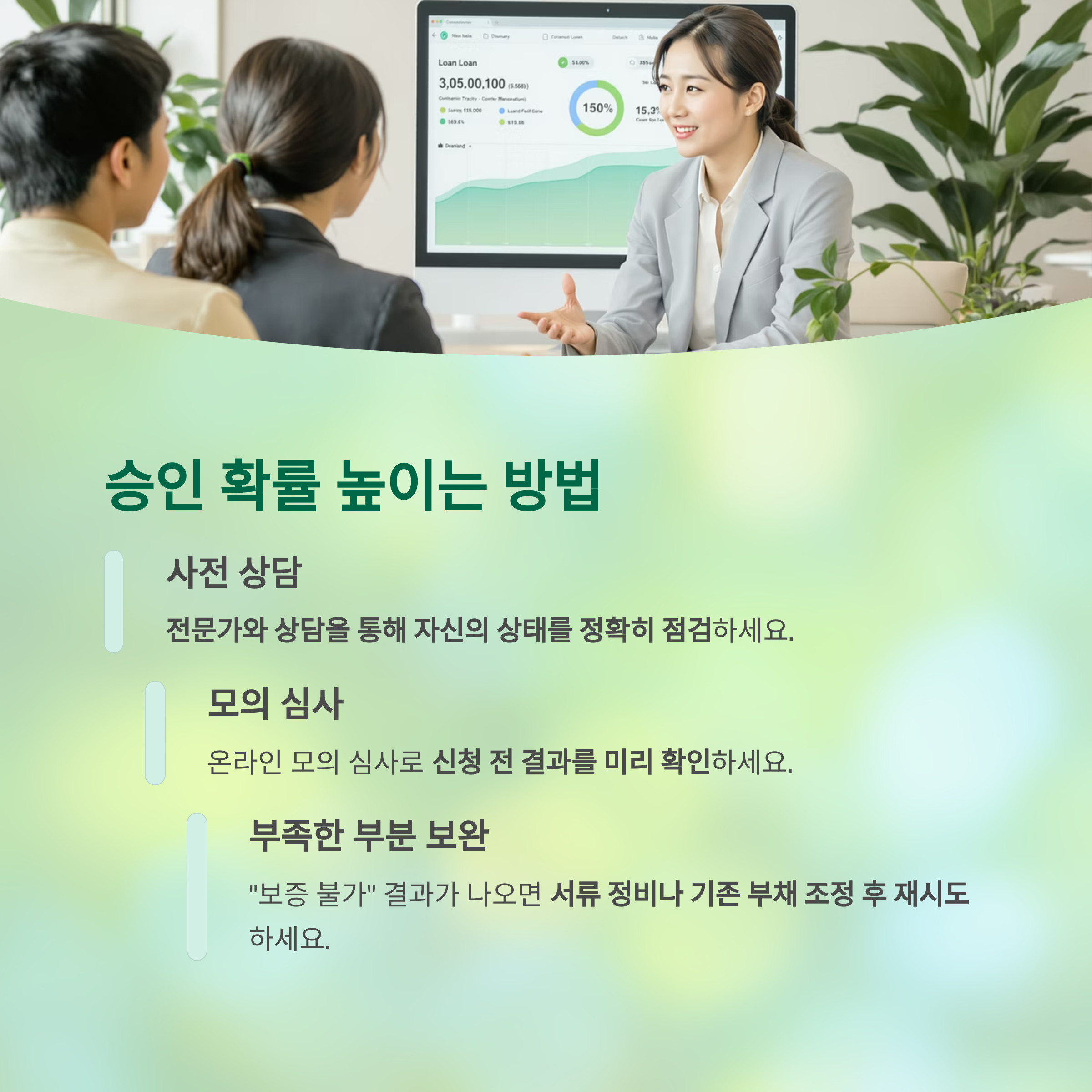 승인 확률을 높이는 방법은 '사전 상담'과 '모의 심사'