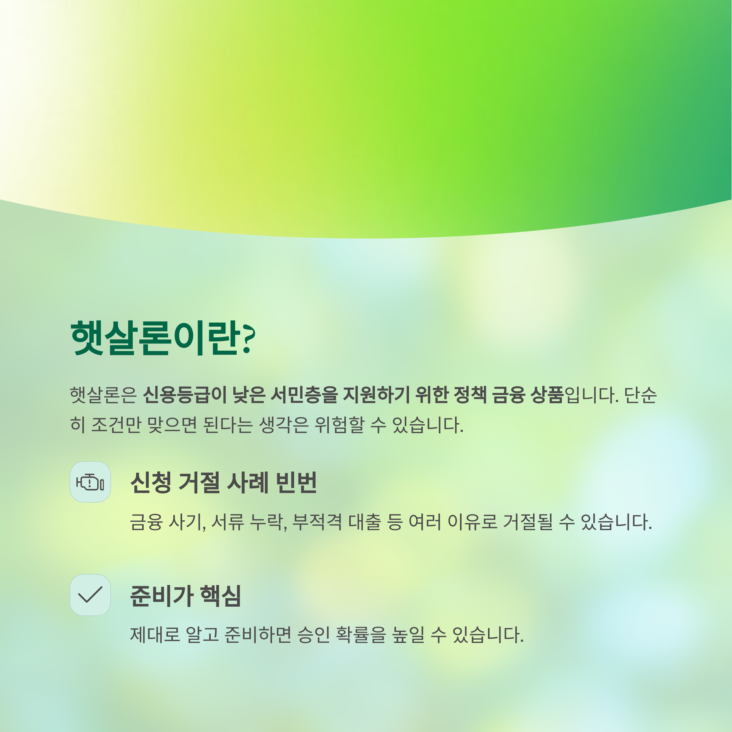 "햇살론은 쉽지만 까다로운 대출입니다"