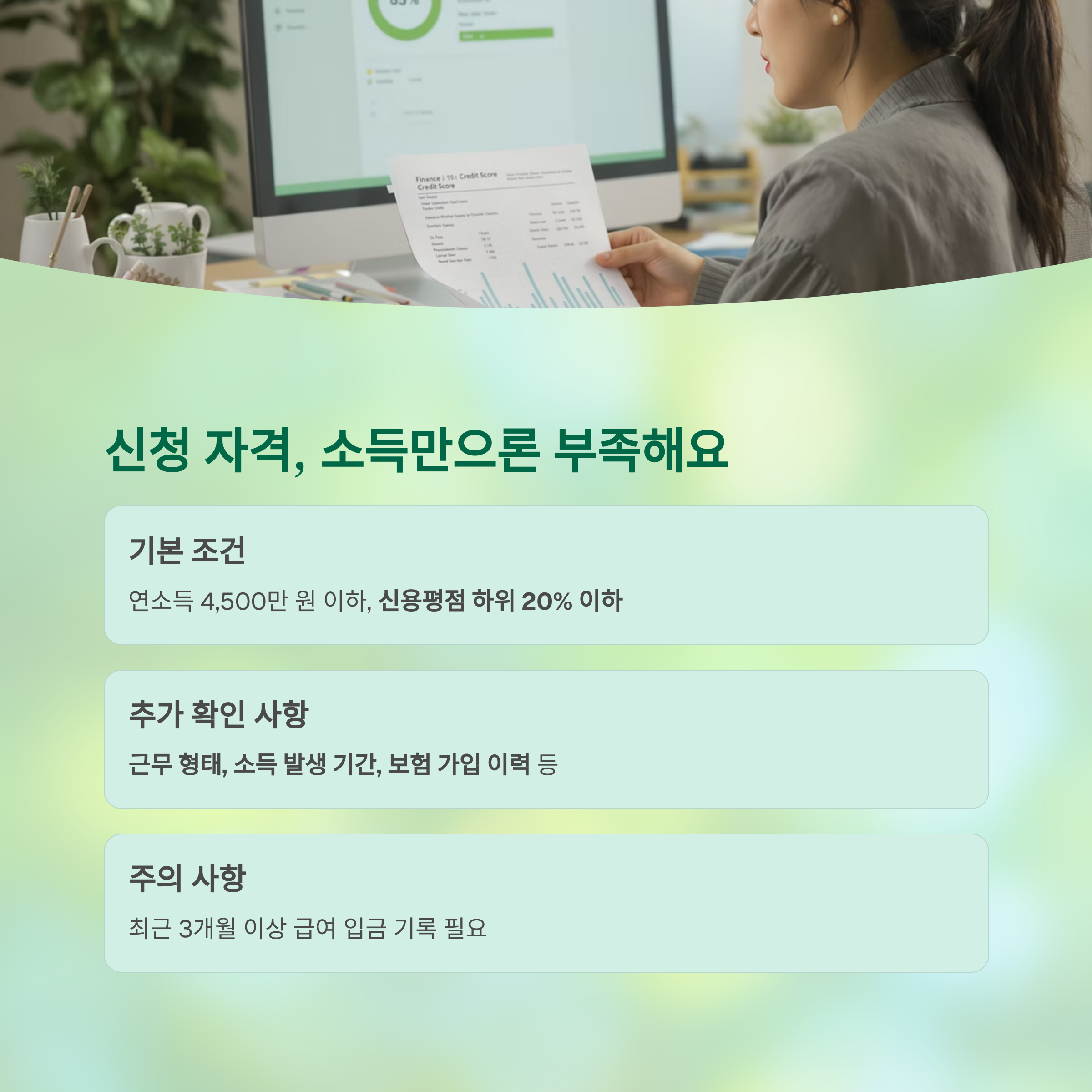 | 자격 조건 | 소득, 신용점수, 근로형태까지 모두 충족해야 가능 |