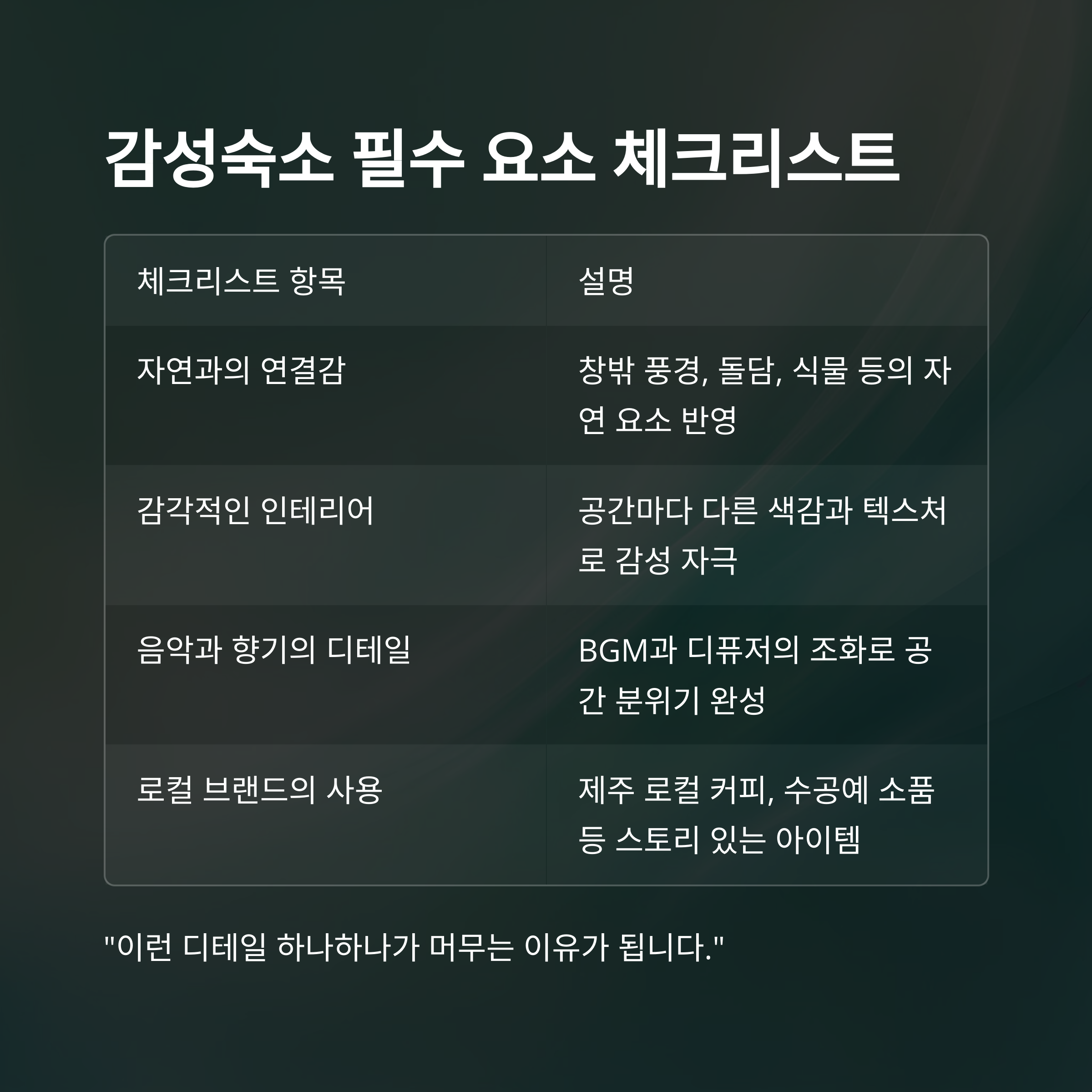 "이런 디테일 하나하나가 머무는 이유가 됩니다."