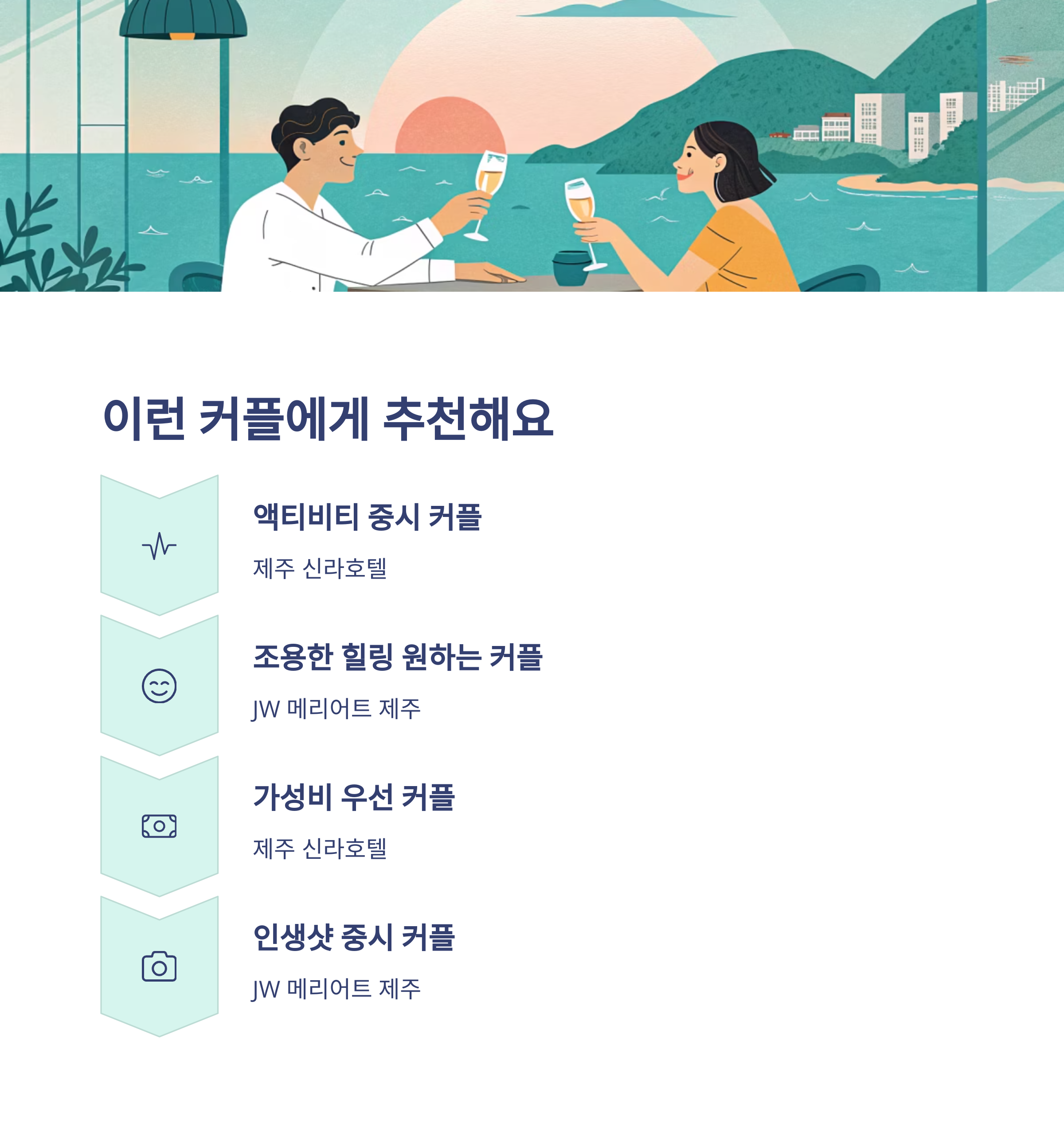 커플의 여행 목적에 따라 선택하면, 후회 없는 제주 여행이 완성됩니다.