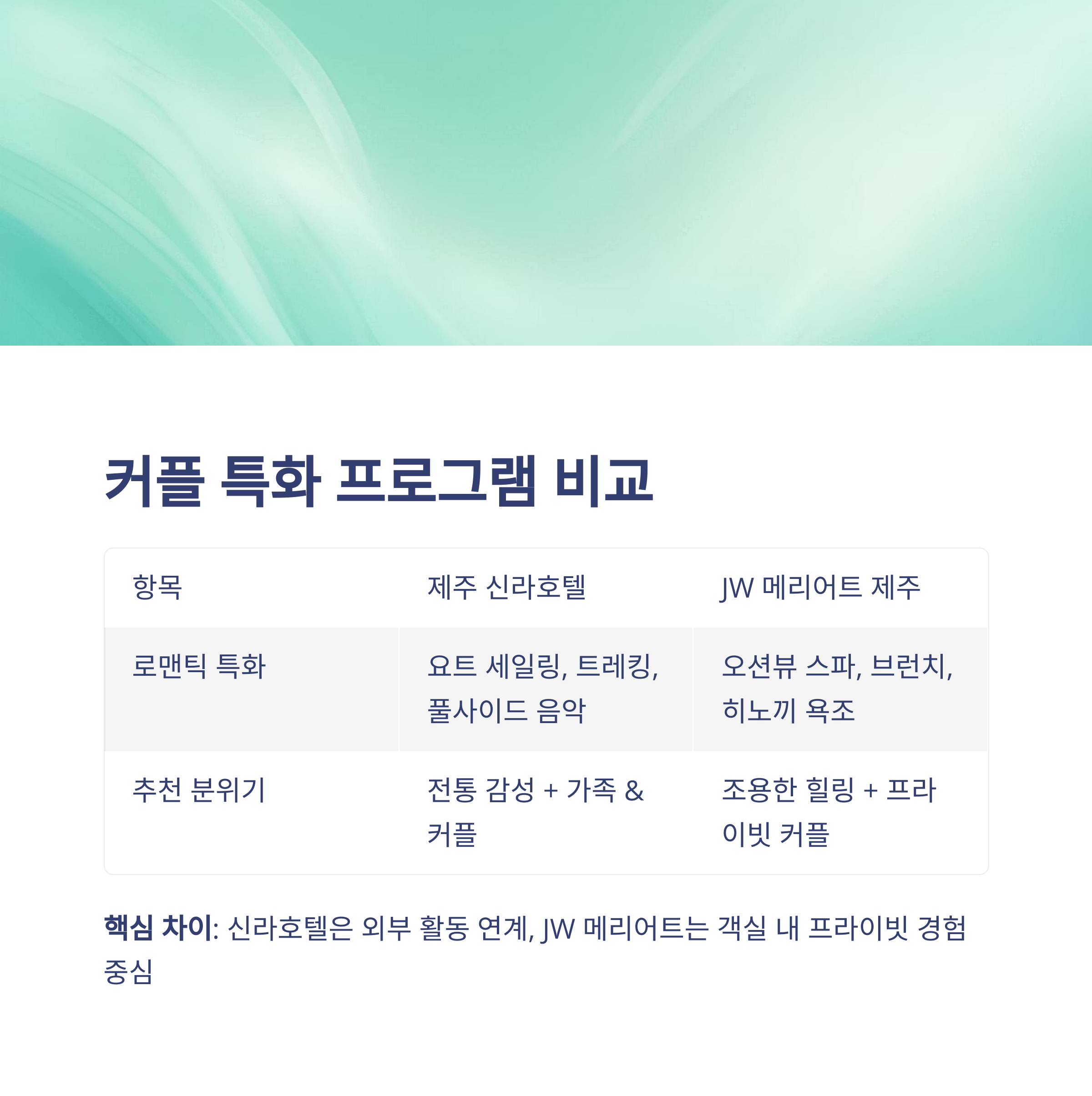 제주도에서 로맨틱한 여행을 계획하는 커플이라면 신라호텔과 JW 메리어트 제주는 단연 눈에 띄는 선택지입니다.