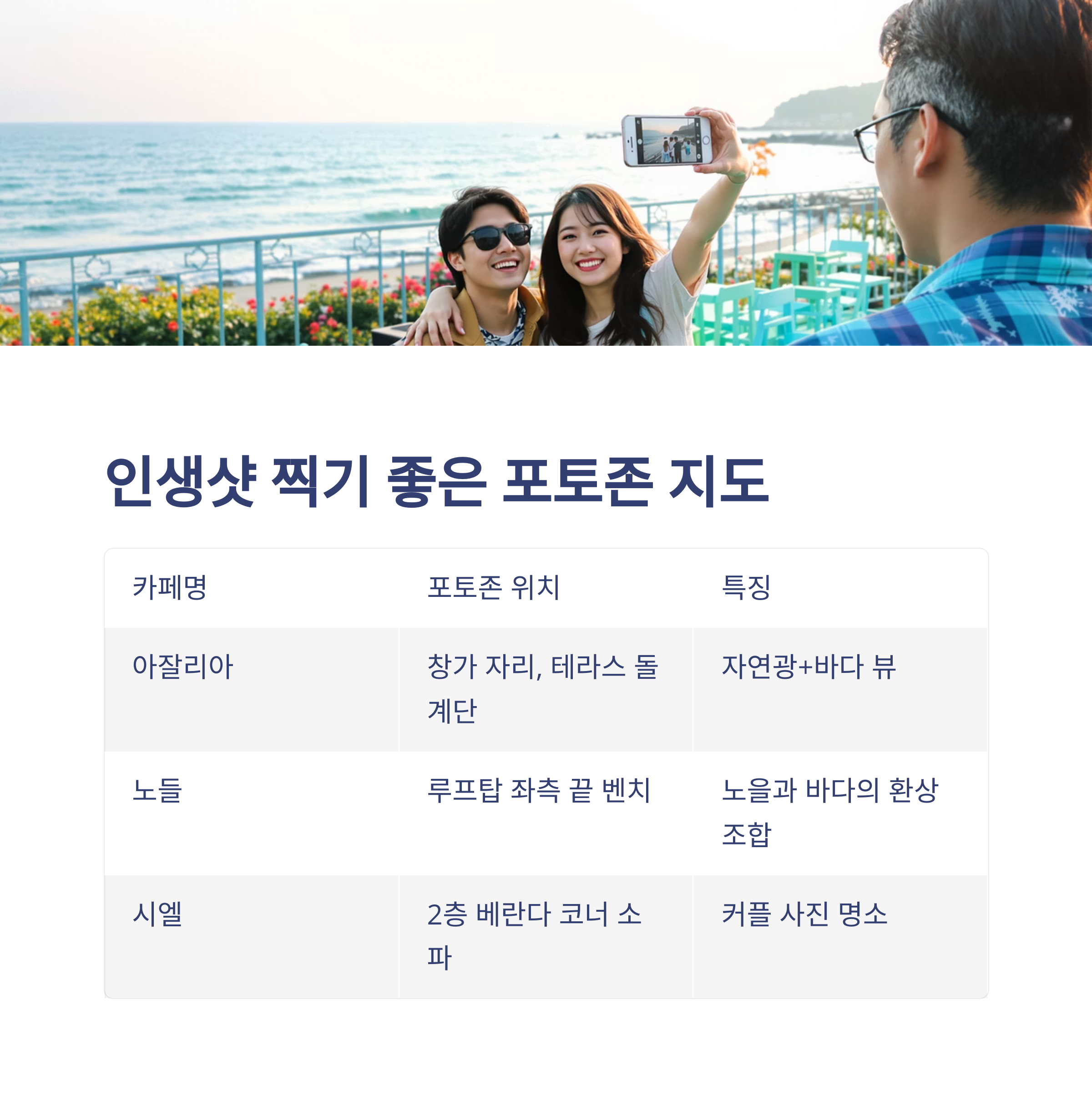 3. 포토존 지도 제공: 인생샷 찍기 좋은 카페별 뷰 포인트 정리