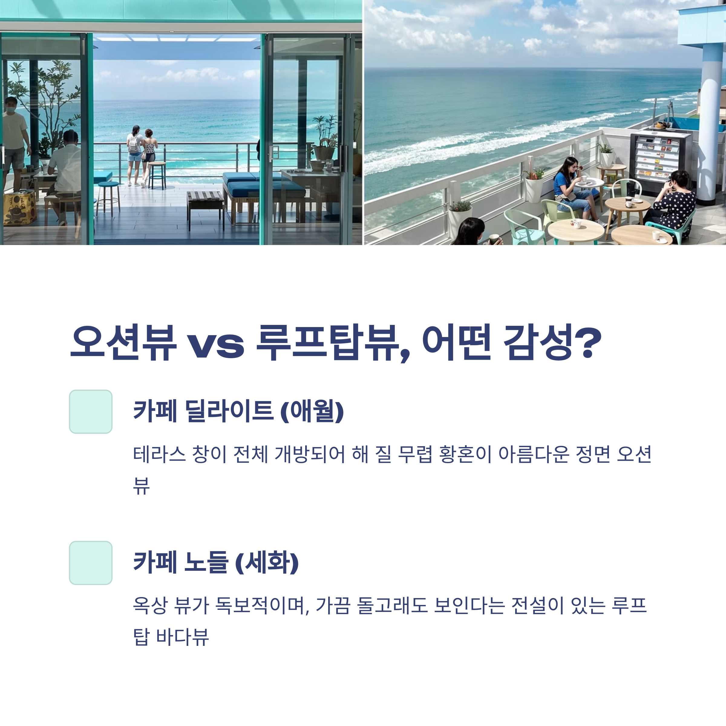 2. 비교 분석: 오션뷰와 루프탑뷰, 카페 딜라이트 vs 카페 노들