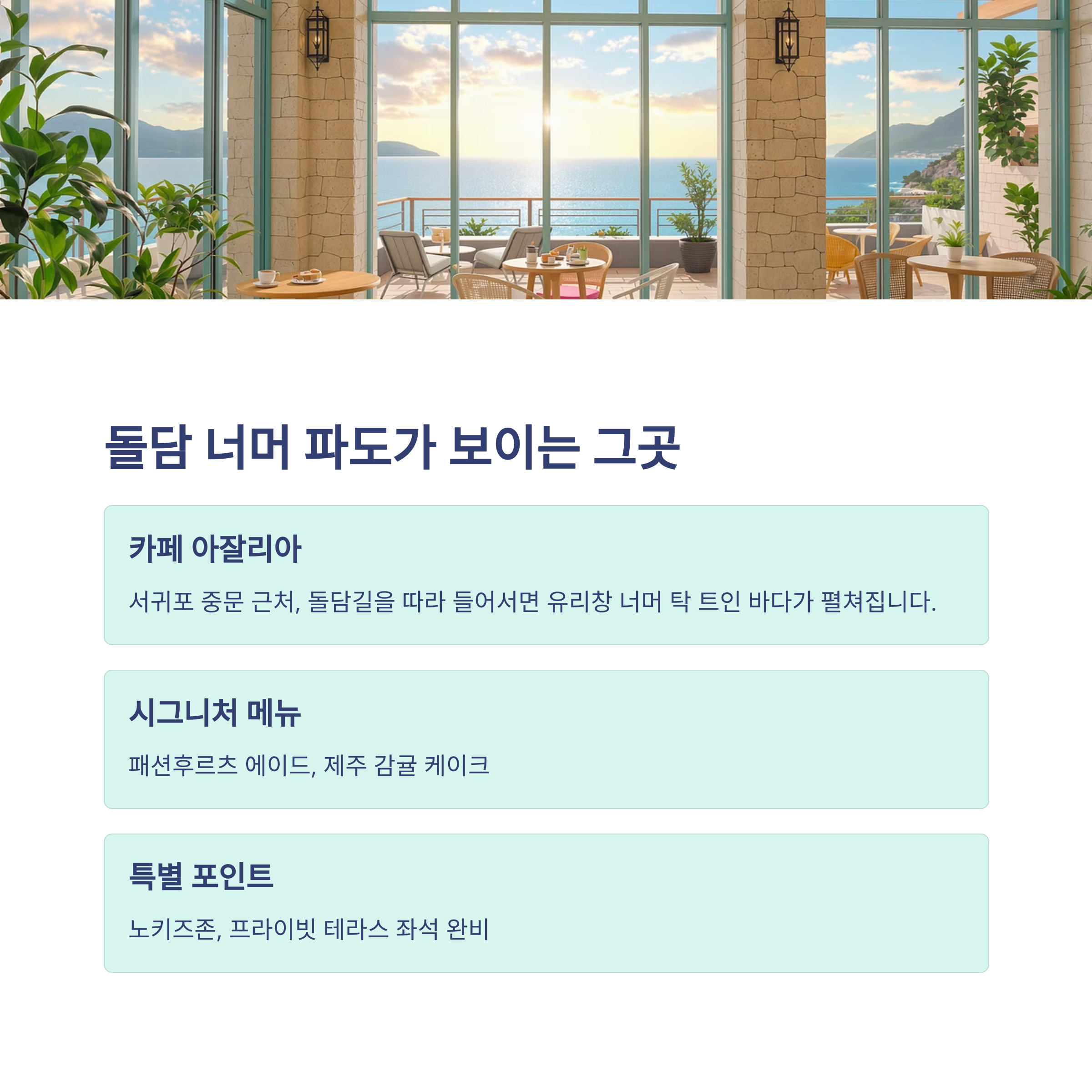 1. 스토리텔링 형식: "돌담 너머 파도가 보이는 그곳, 카페 아잘리아"