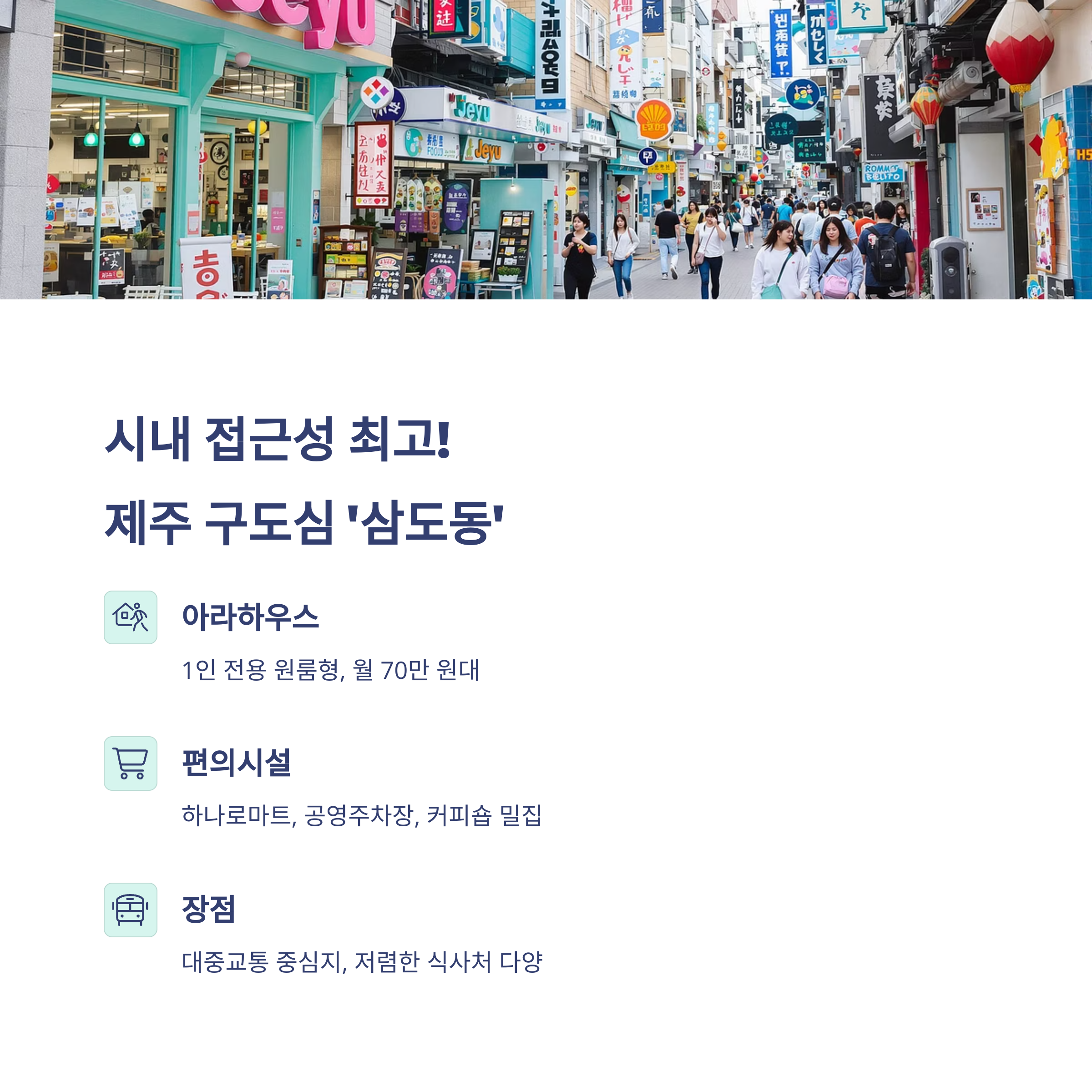 - 추천 숙소: '아라하우스' – 1인 전용 원룸형, 월 70만 원대