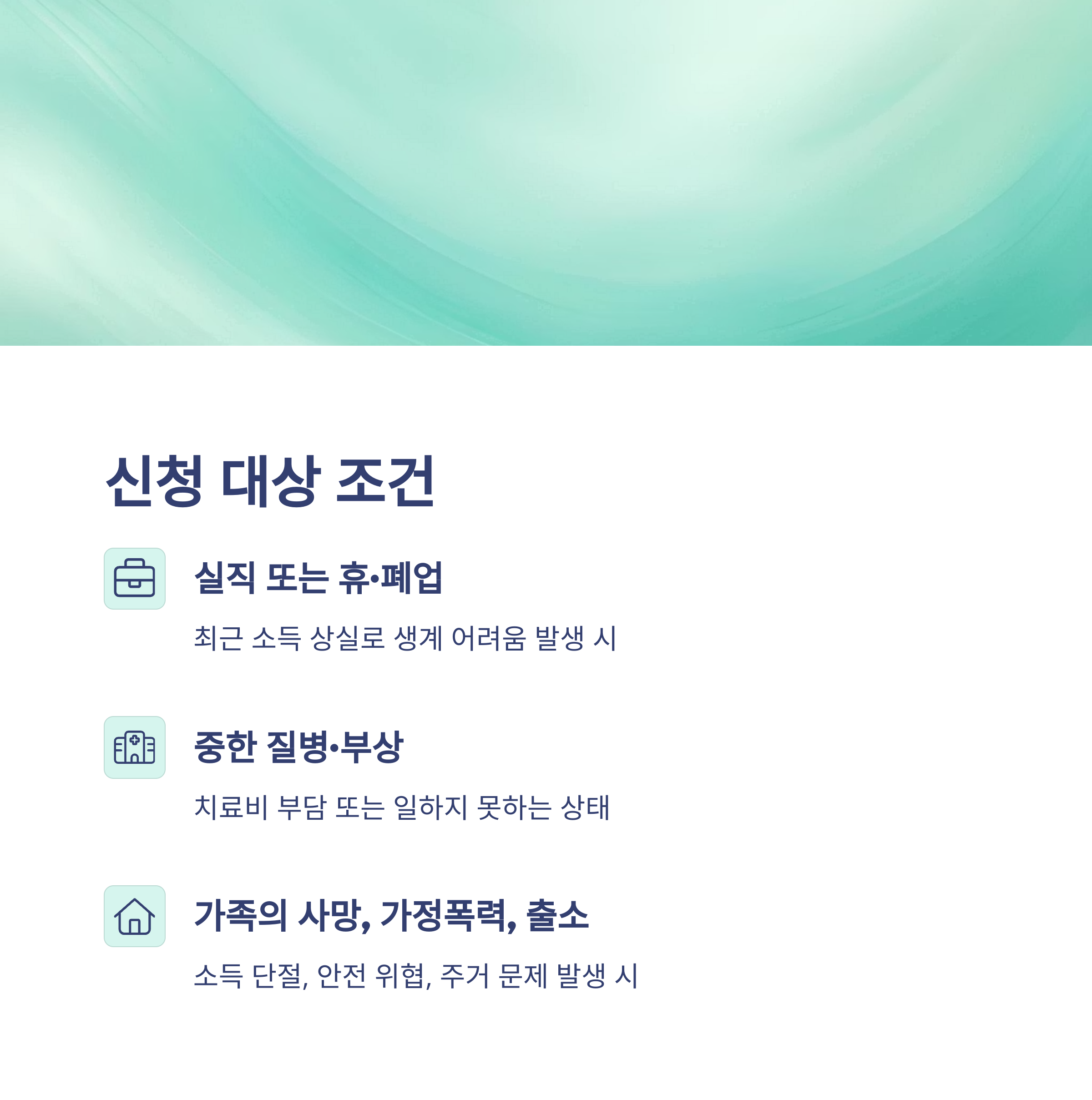 | 실직 또는 휴·폐업 | 최근 소득 상실로 생계 어려움 발생 시 |