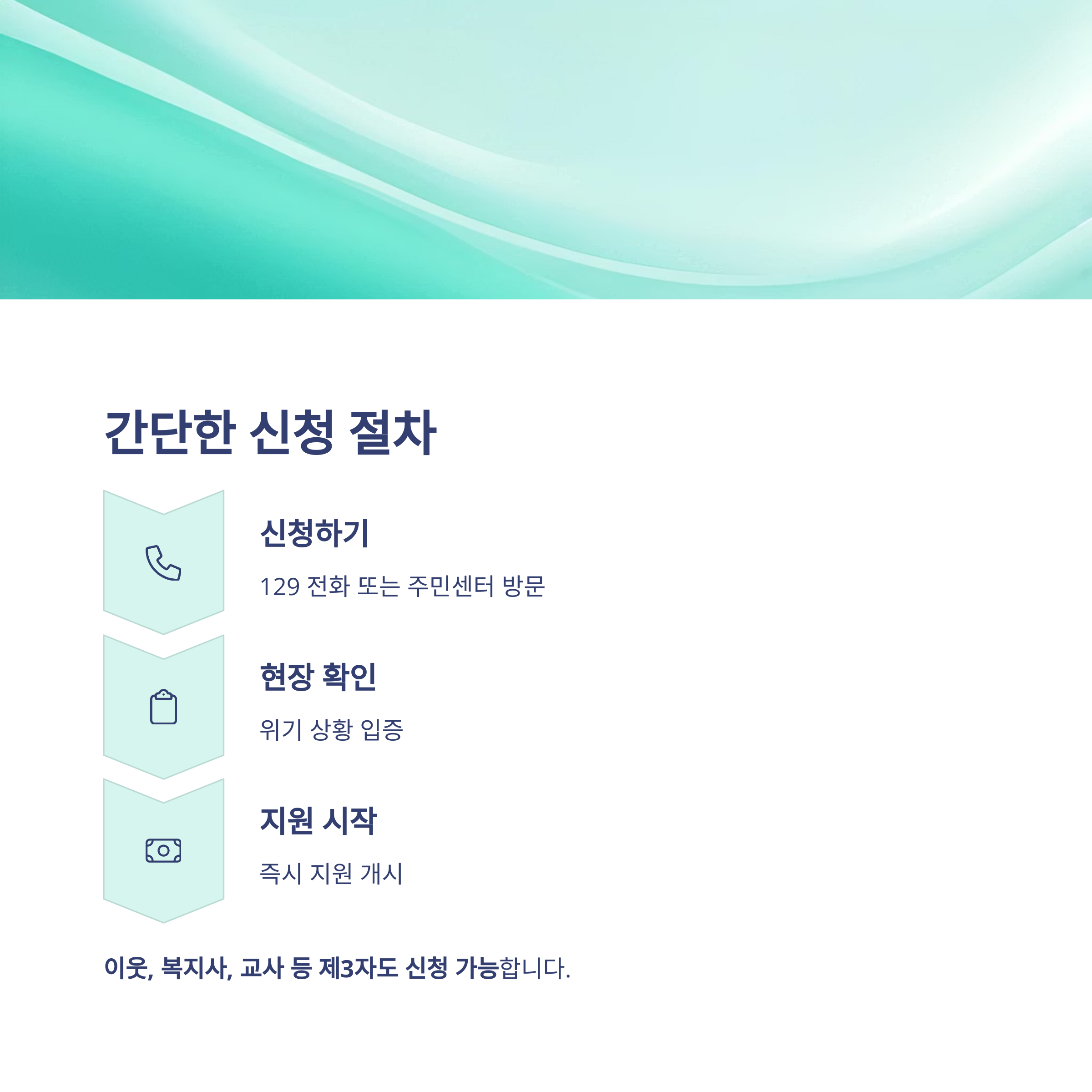 중요: 자신이 아니더라도 이웃, 복지사, 교사 등 제삼자도 신청 가능합니다.